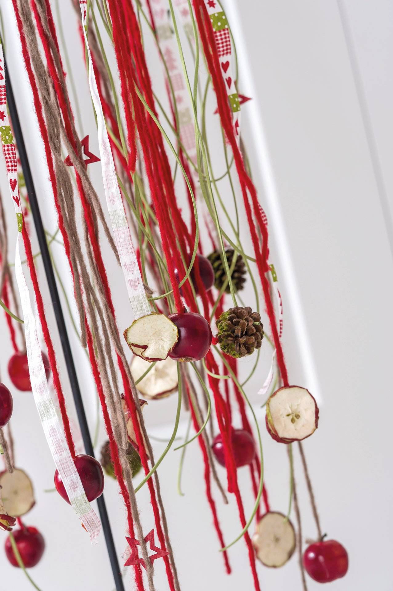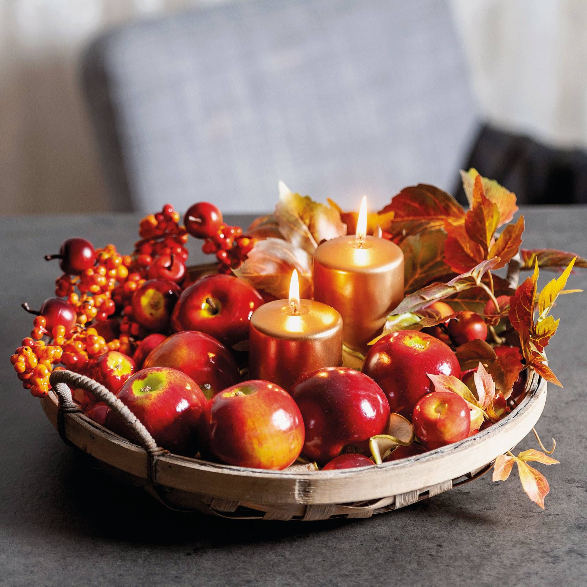 Pomme décorative en polystyrène solide avec tige et dégradé de couleurs naturel allant du rouge au jaune. Tige métallique d'environ 8,5 cm. Non comestible.