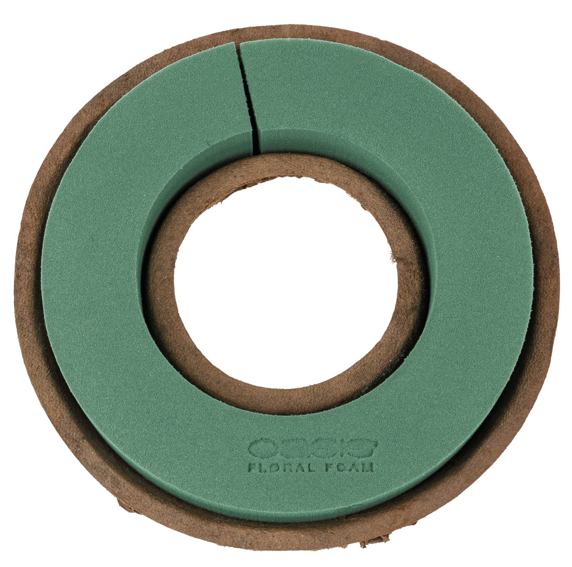 Anneau en mousse florale mouillable sur base fabriquée à partir de 100% de vieux papier pressé.