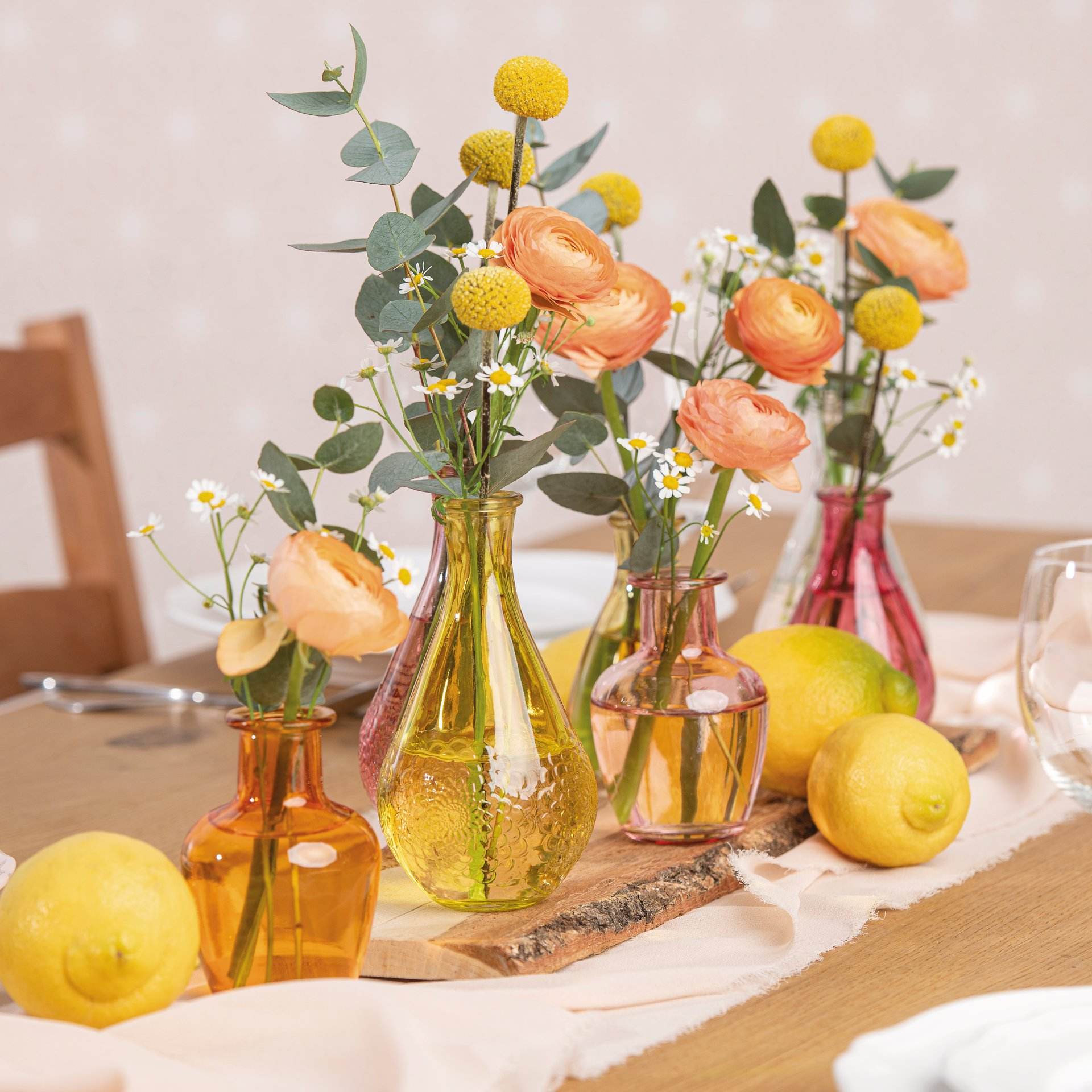 Petit vase en verre teinté. Lot de 4 pièces assorties.