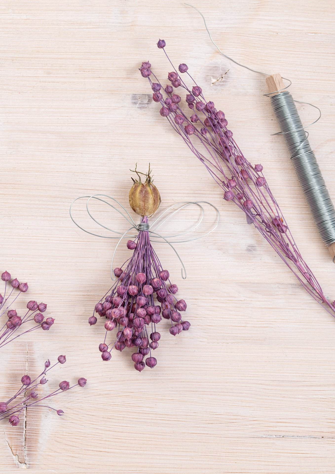 Getrockneter Flachs. 80 g pro Bund. Bei Naturmaterialien können Größen und Farben abweichen.