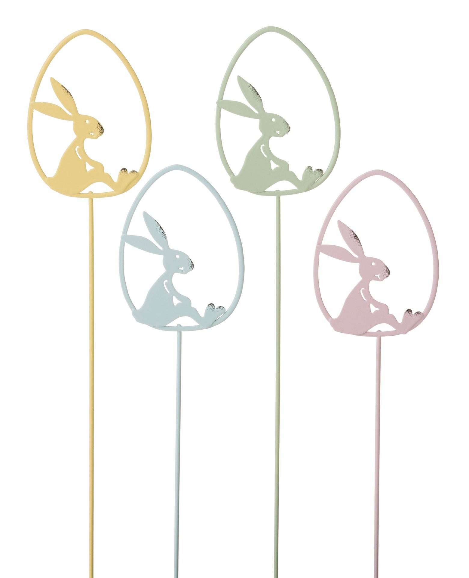 Bastoncini in metallo con coniglio nell'uovo, 2 pezzi assortiti. Misure: 5 x 7 - 28 cm.