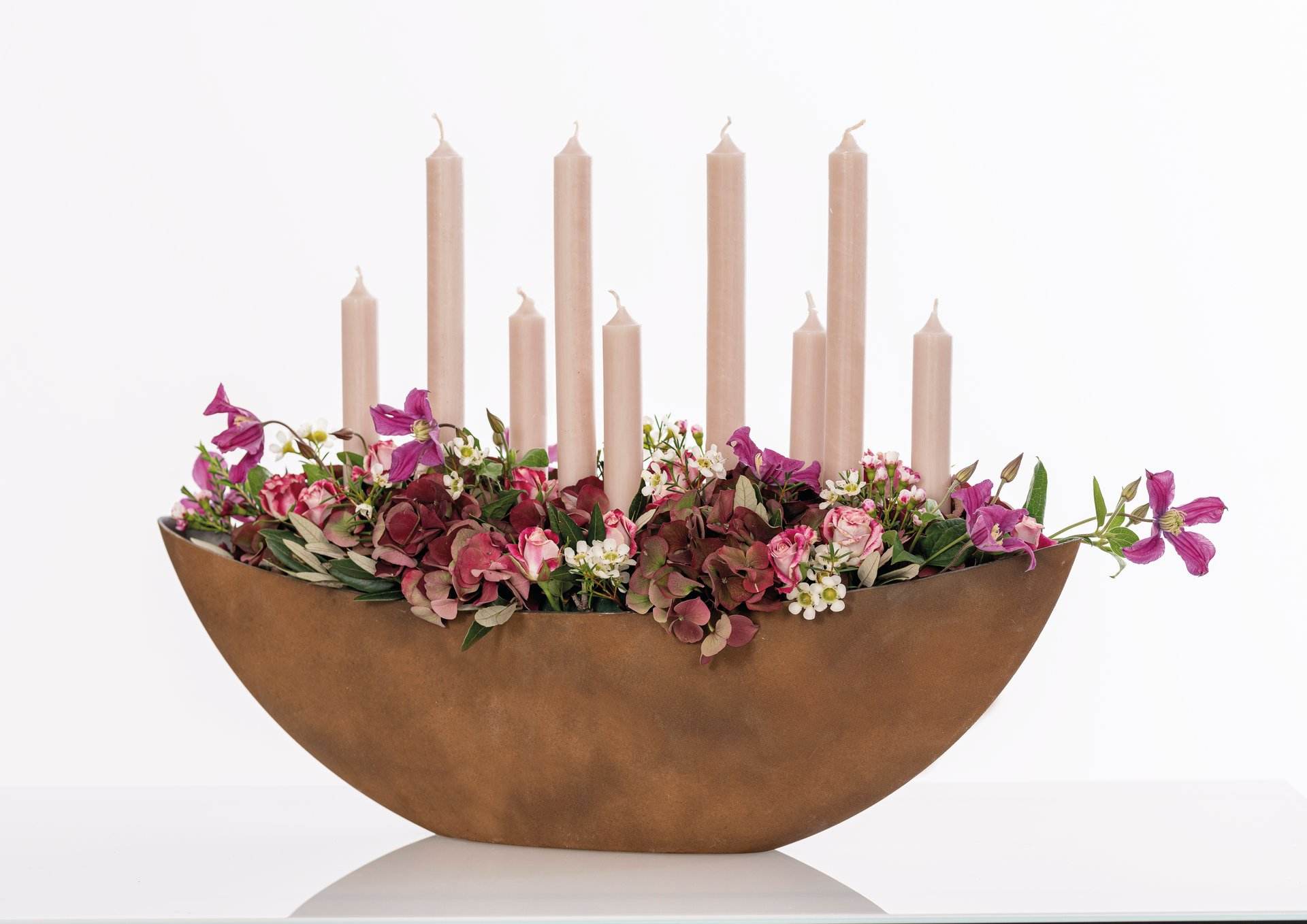 Candela cilindrica colorata con superficie strutturata. Durata di combustione: Ø 6 x 8 cm: circa 25 ore, Ø 6 x 11 cm: circa 40 ore, Ø 7 x 14 cm: circa 69 ore.