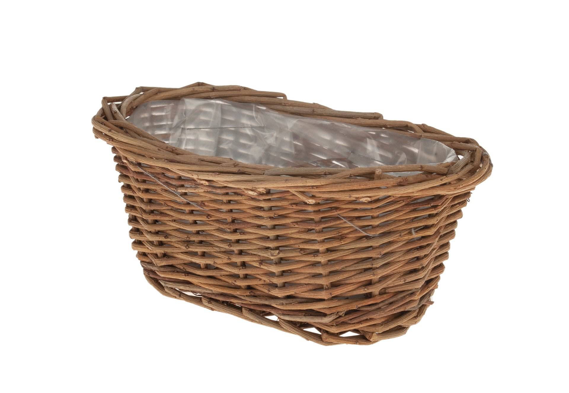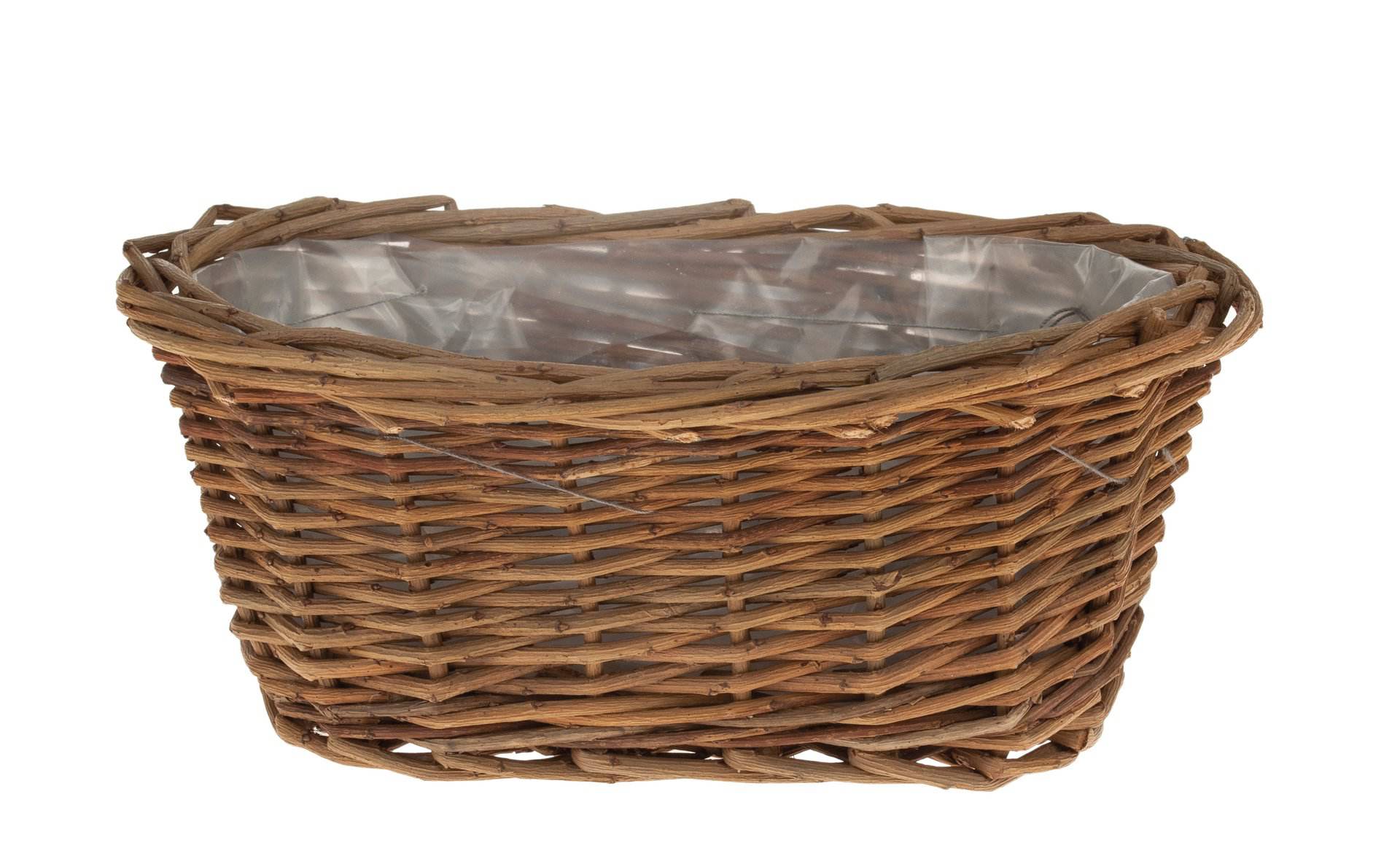 Cesto ovale in salice con corteccia. Rivestito all´interno.