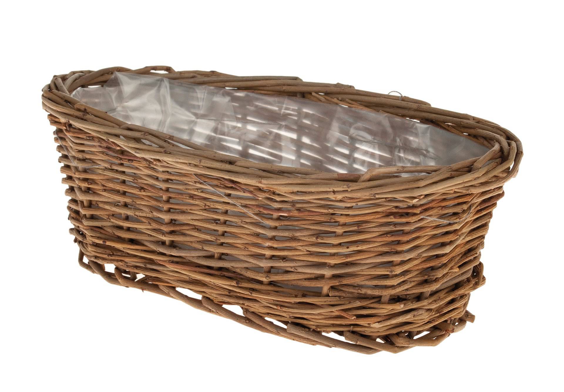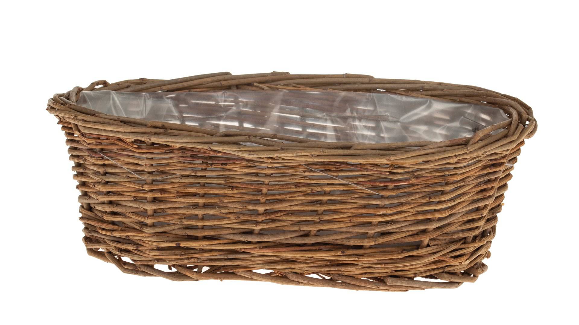 Cesto ovale in salice con corteccia. Rivestito all´interno.
