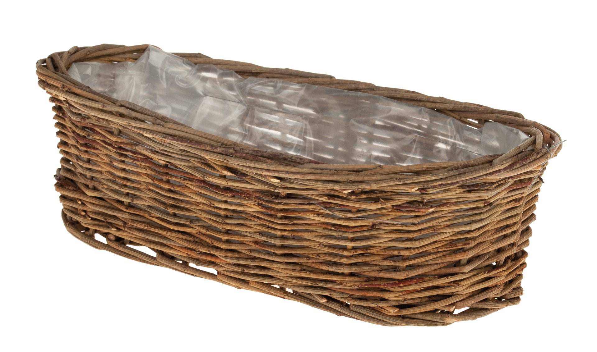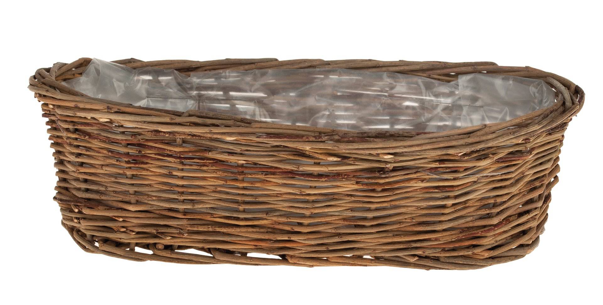 Cesto ovale in salice con corteccia. Rivestito all´interno.