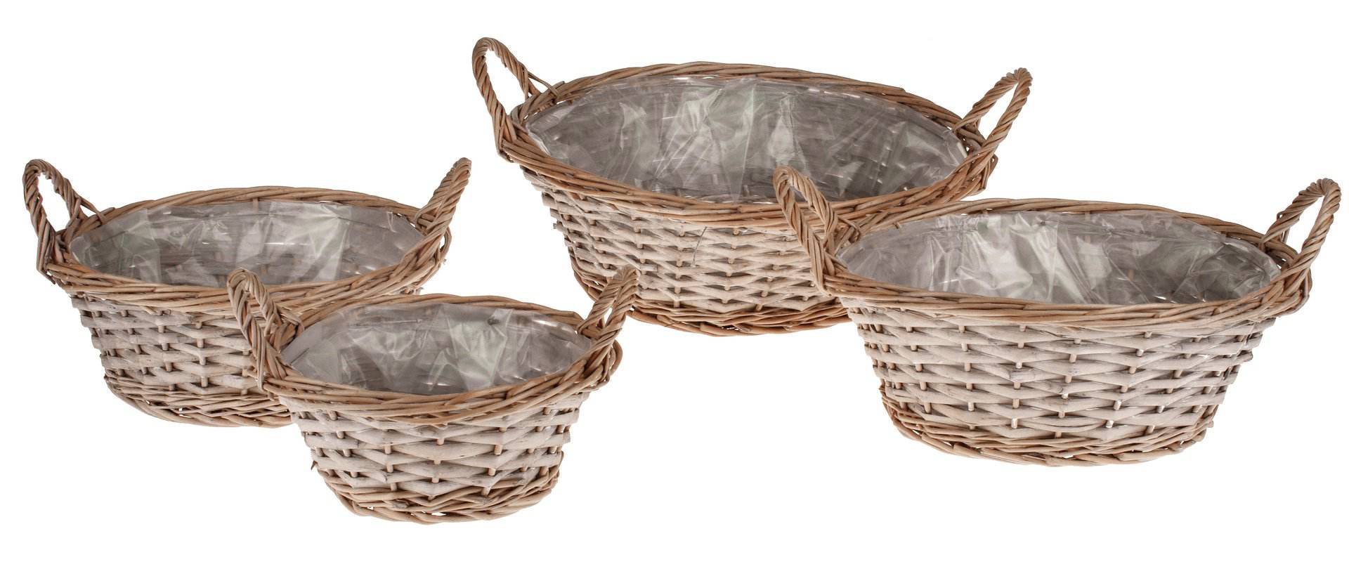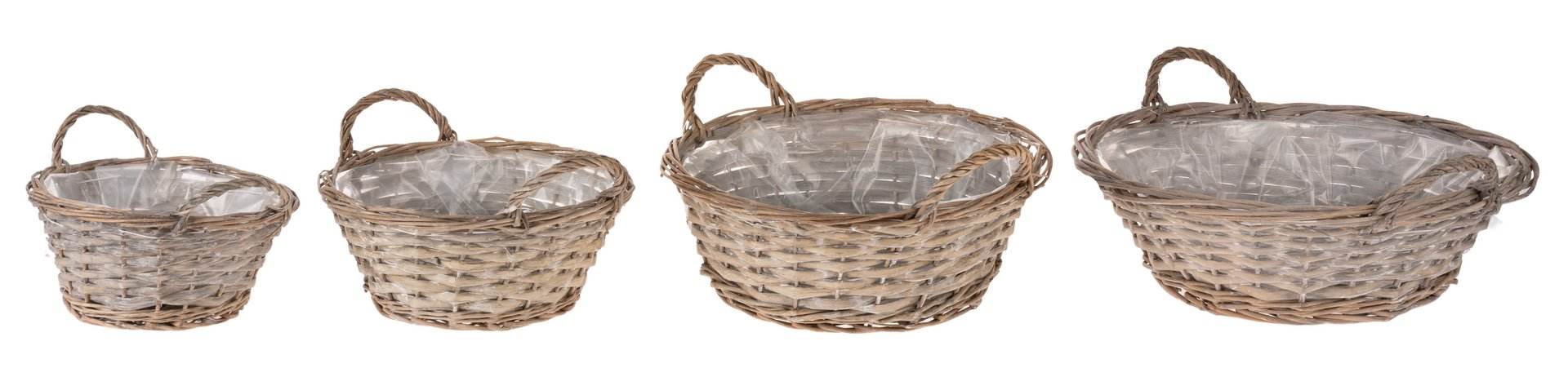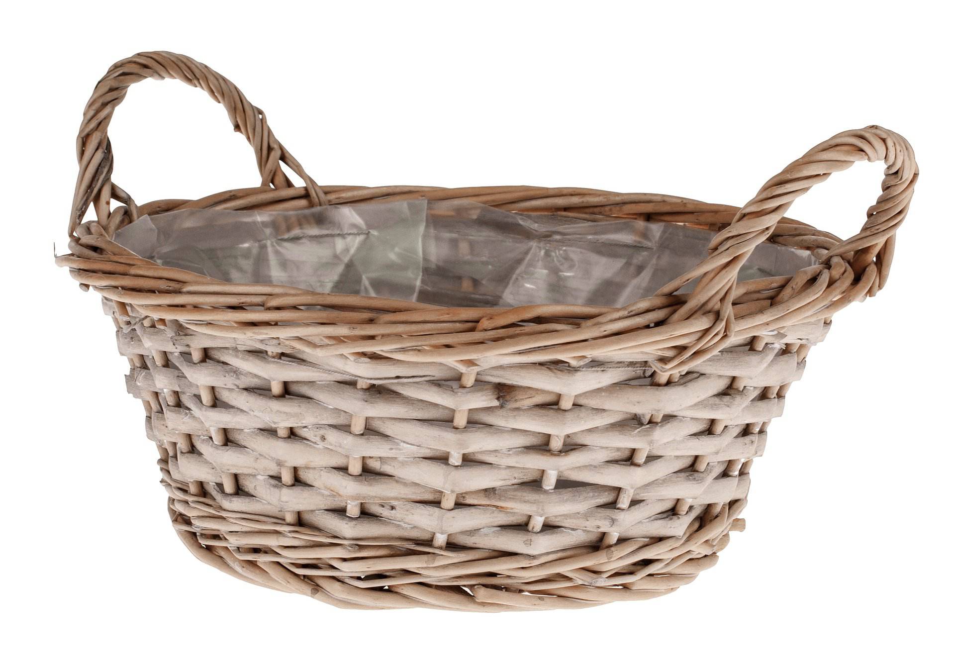 Cesto rotondo con manici di salice non scortecciato. Rivestito all´interno.
