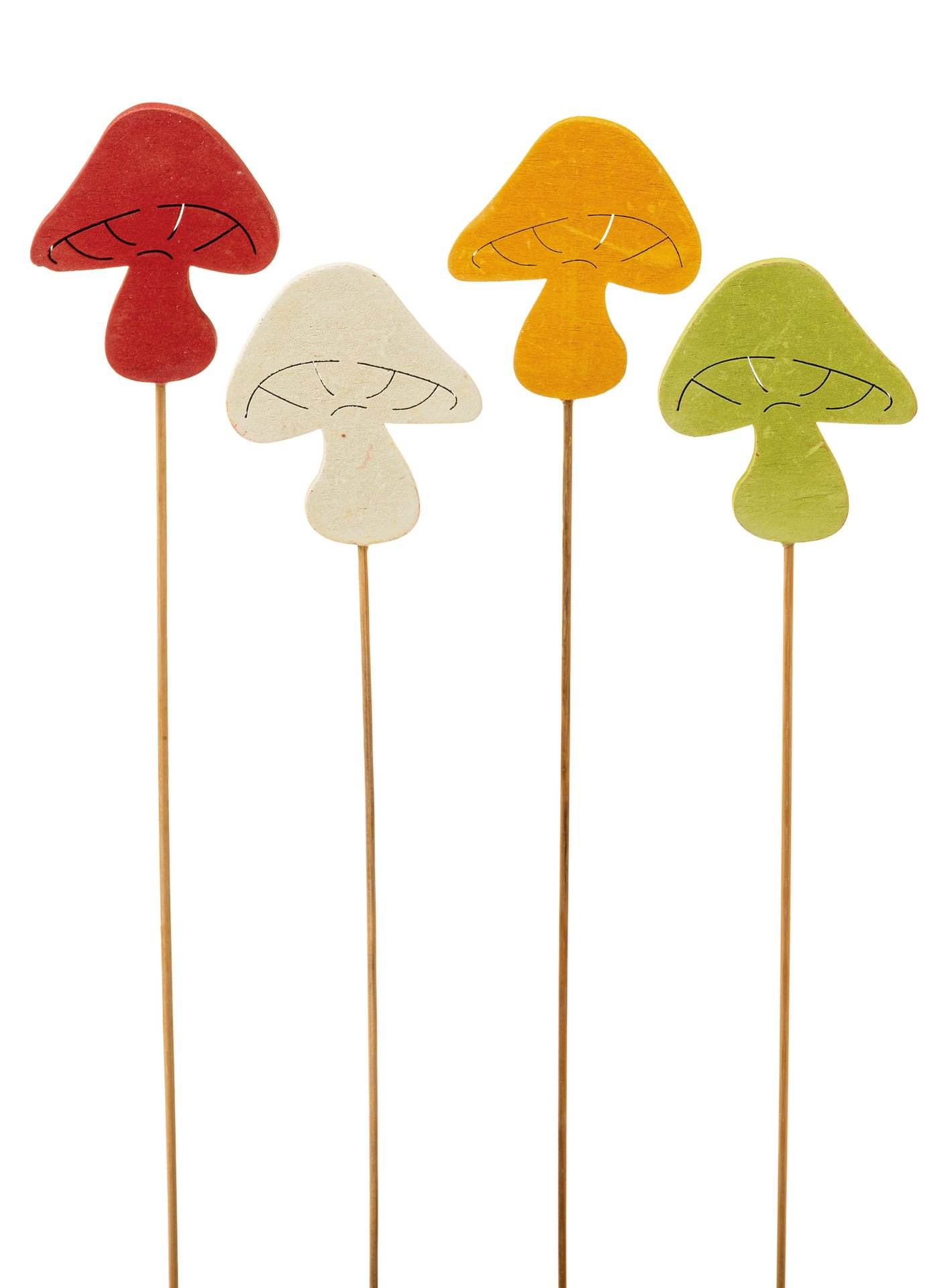 Innesto in legno a forma di fungo. Assortito in 4 colori: rosso, crema, giallo e verde.