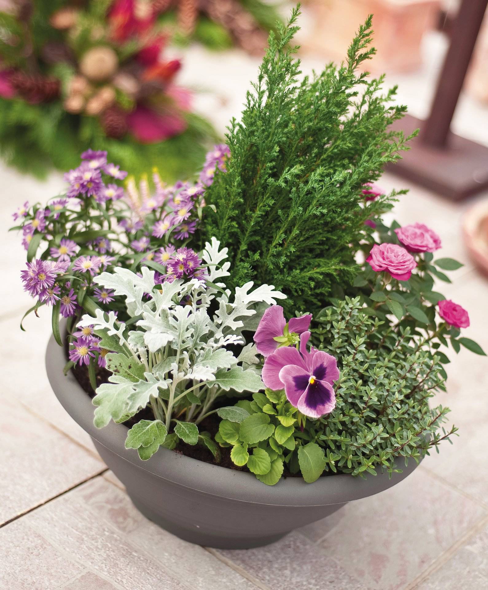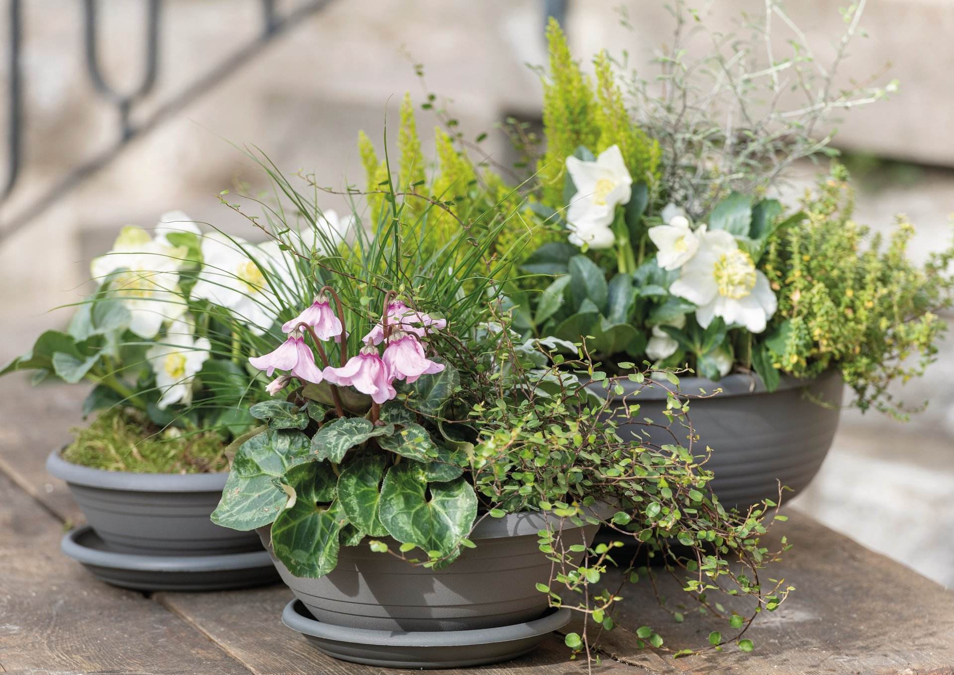 Contenitore classico per piante in materiale sintetico, con 4 fori di deflusso sul fondo.