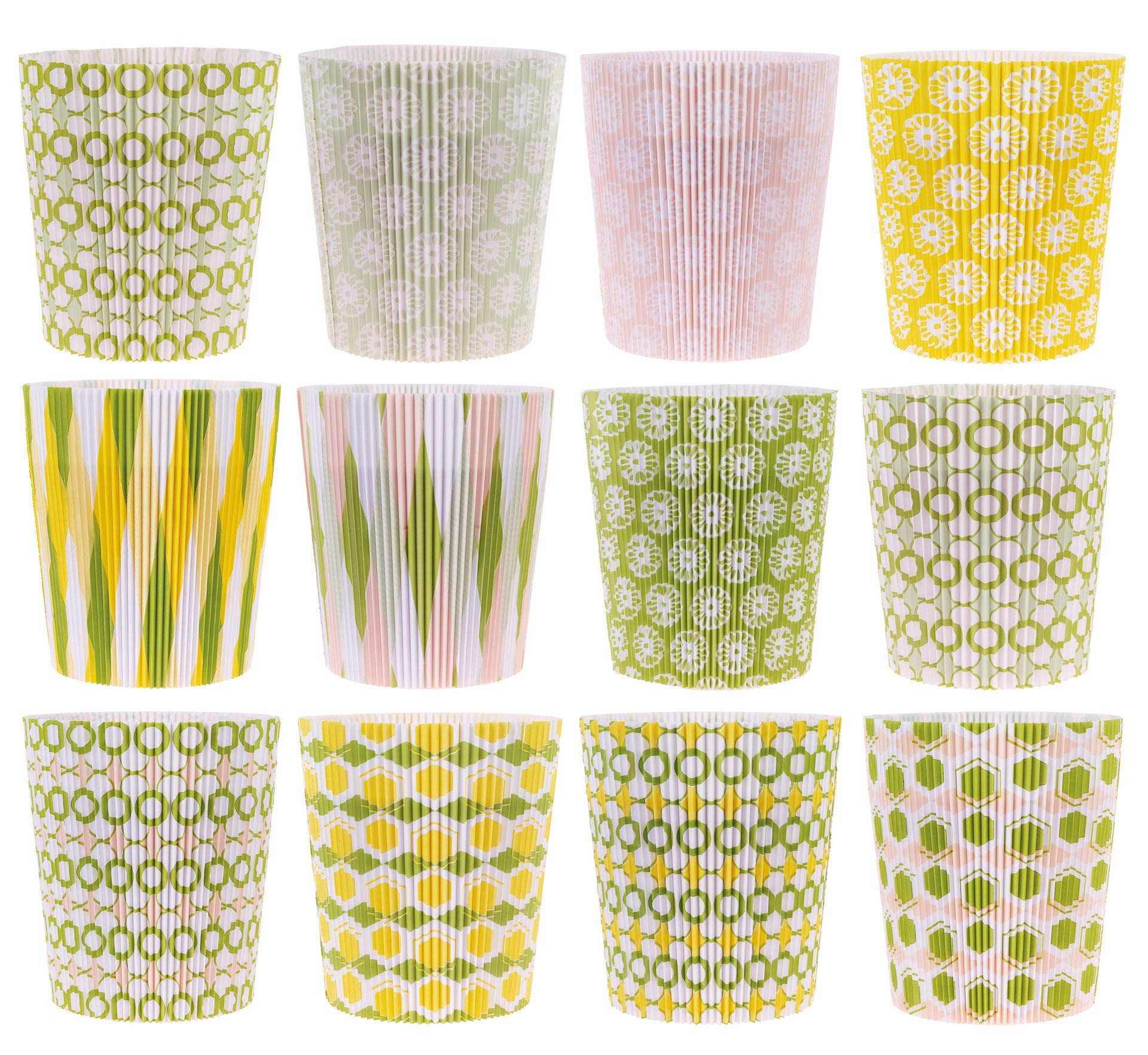 Collezione di polsini plissettati in vari colori e fantasie. totale 120 pezzi/box .