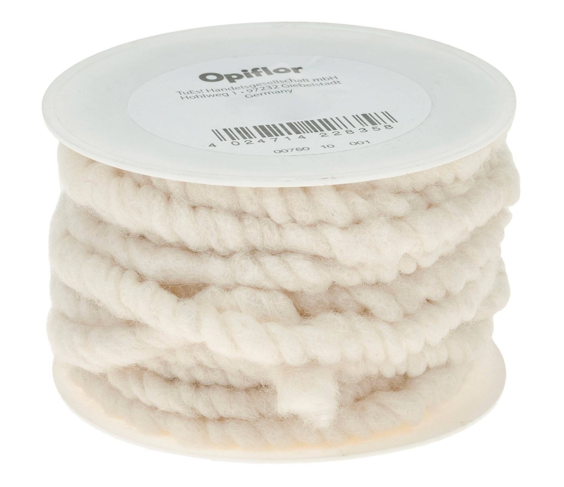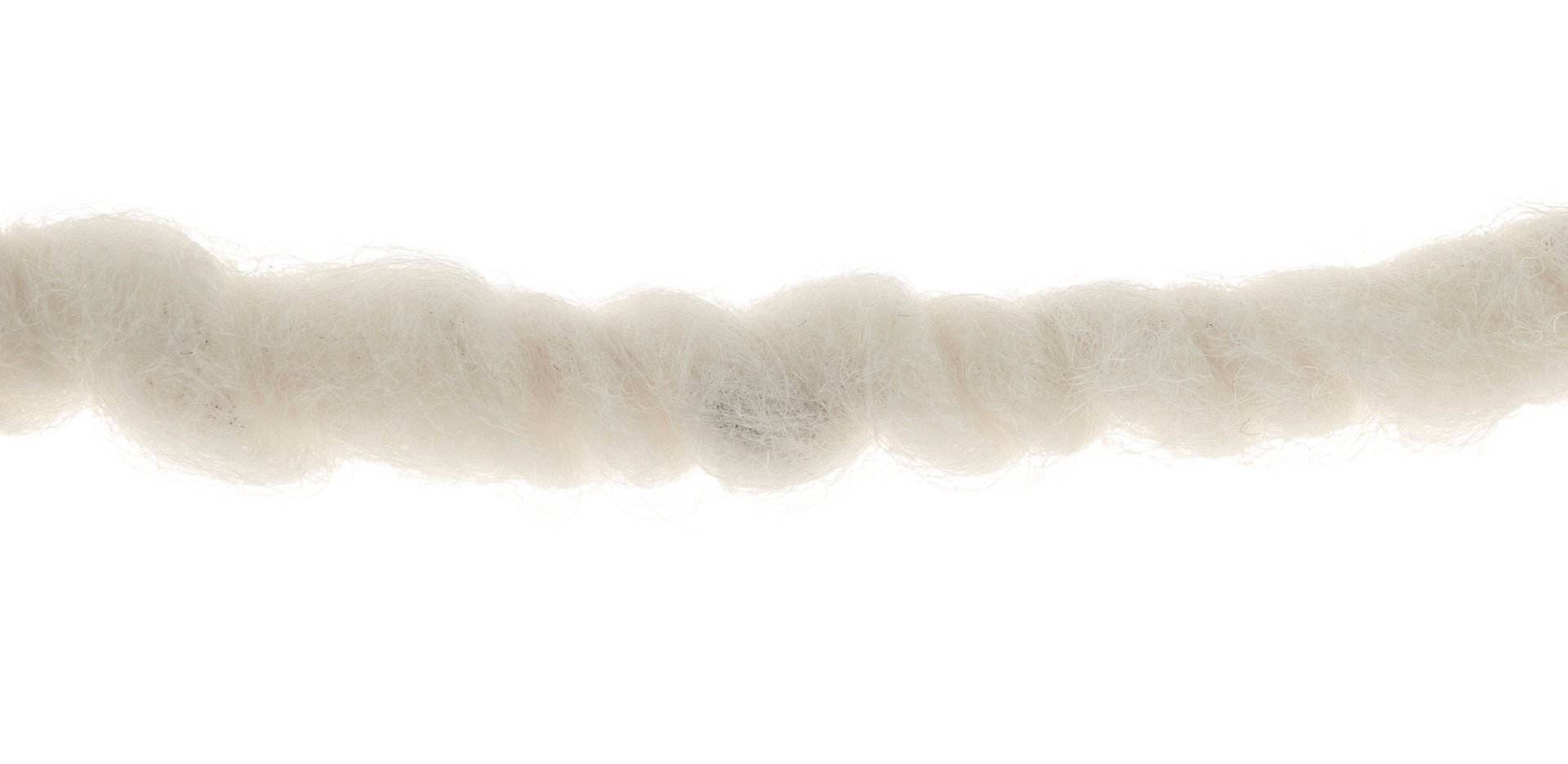 Robusto cordoncino di iuta avvolto saldamente con 100% lana infeltrita. La lana è fabbricata in Germania, priva di sostanze tossiche (certificata secondo lo standard Ökotex 100), resistente allo strappo, facilmente utilizzabile e non perde il colore al 100%.