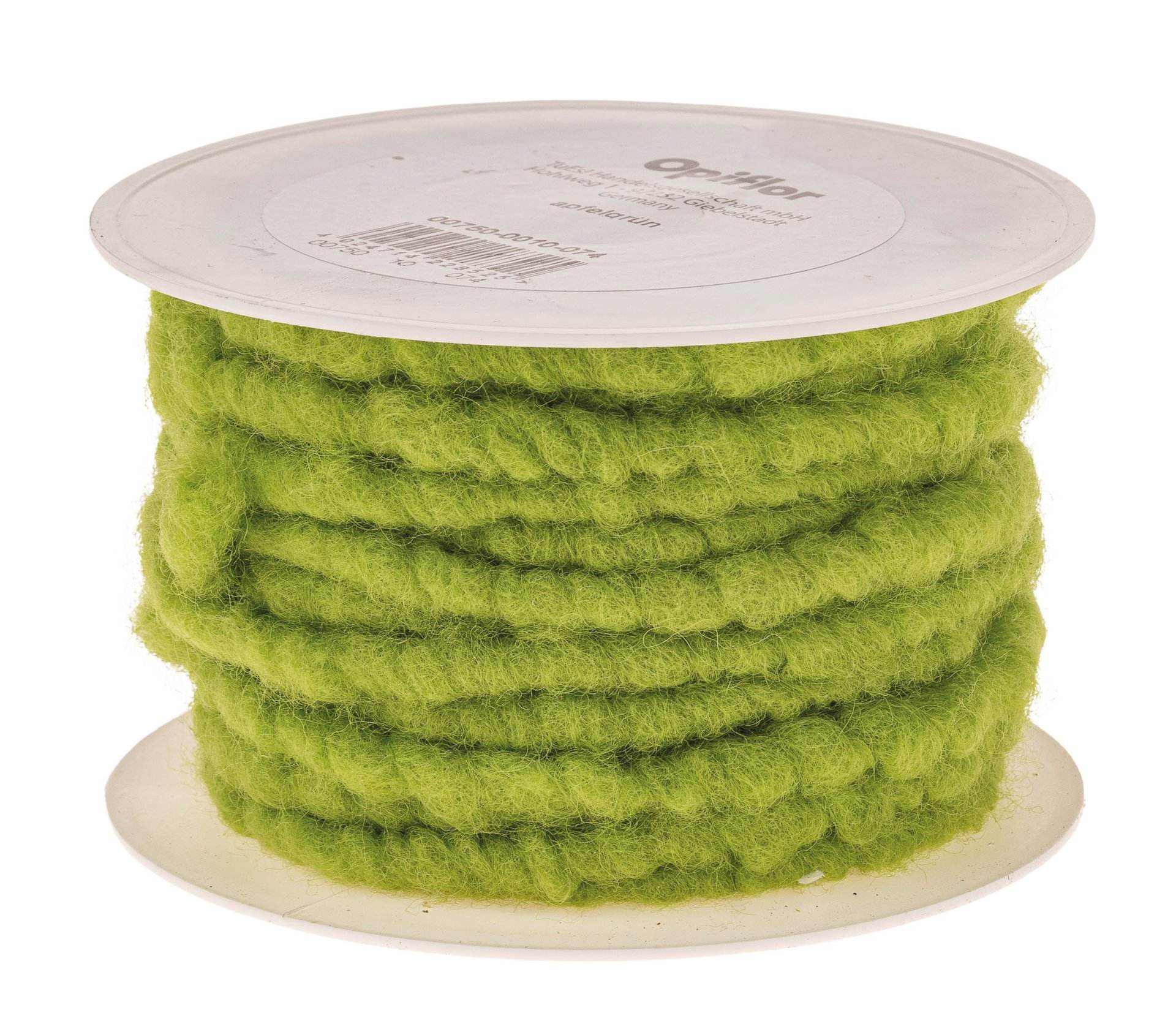 Cordoncino soffice di 100% lana fine infeltrita. La lana è prodotta in Germania, priva di sostanze nocive (certificata secondo lo standard Ökotex 100), resistente alla luce e non perde il colore.