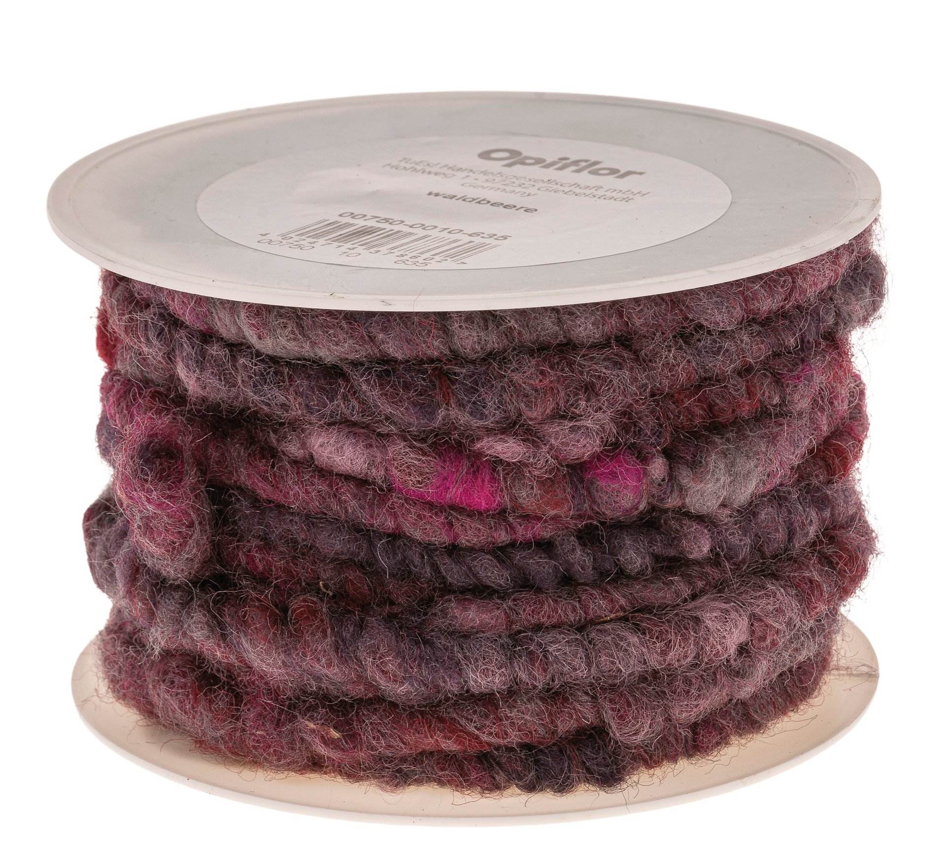 Cordoncino soffice di 100% lana fine infeltrita. La lana è prodotta in Germania, priva di sostanze nocive (certificata secondo lo standard Ökotex 100), resistente alla luce e non perde il colore.