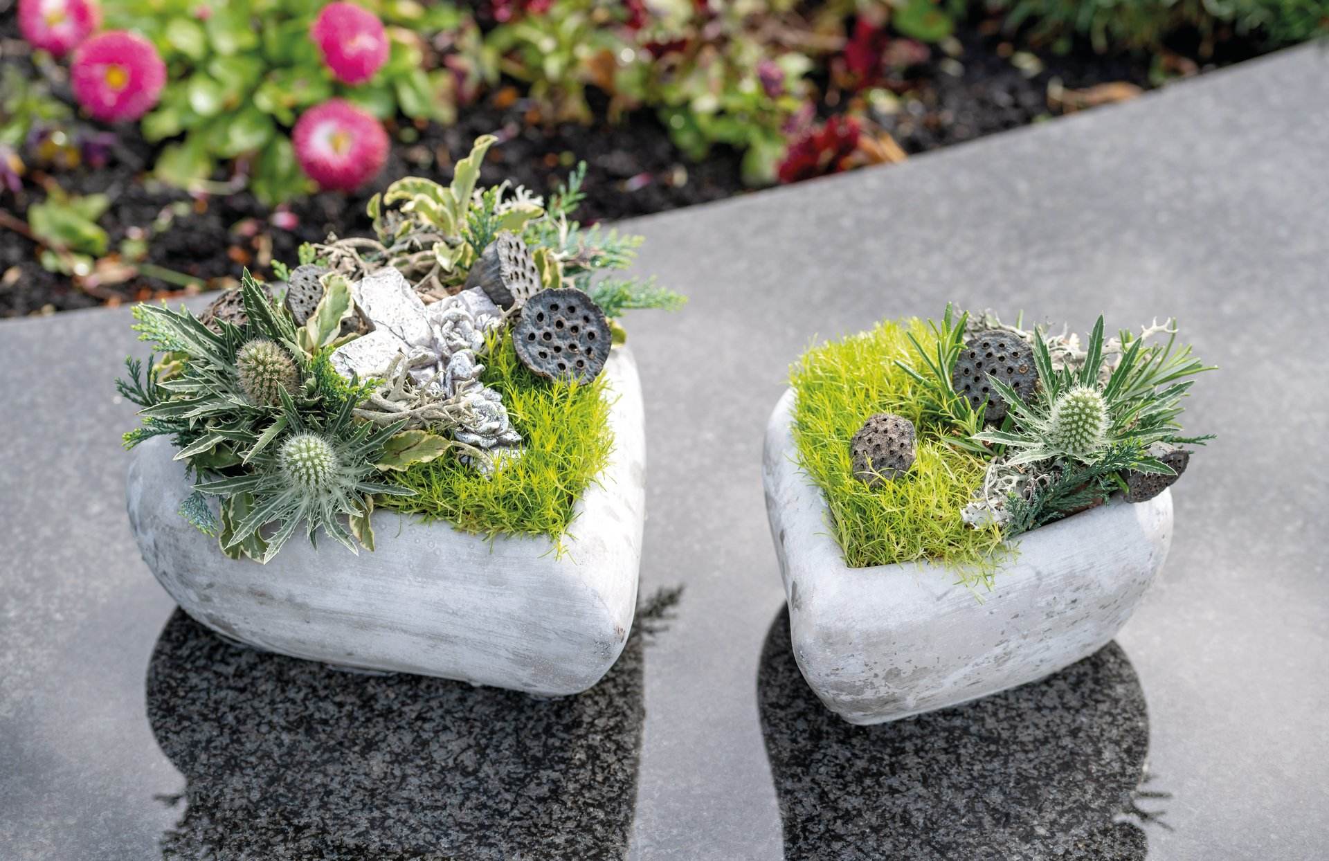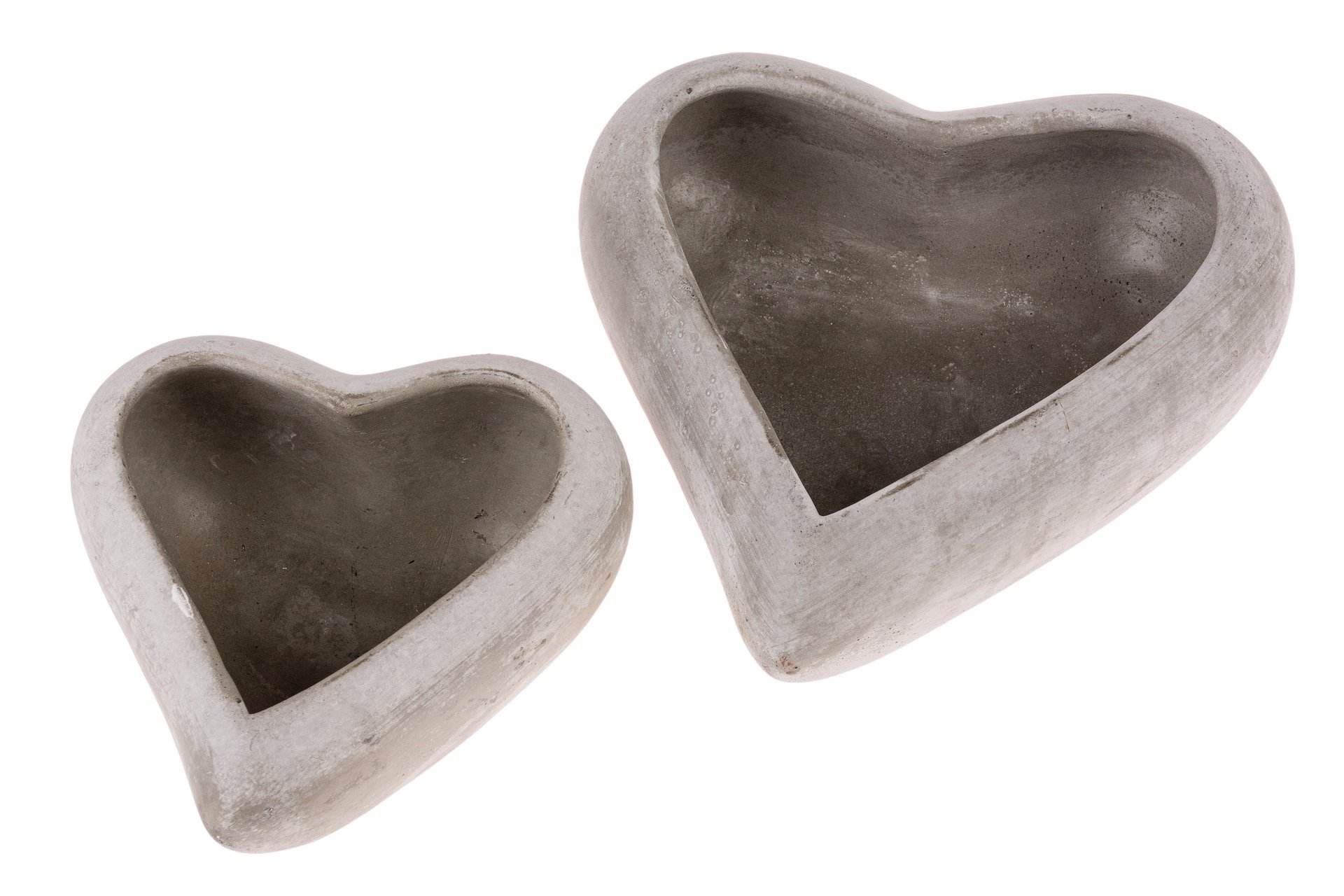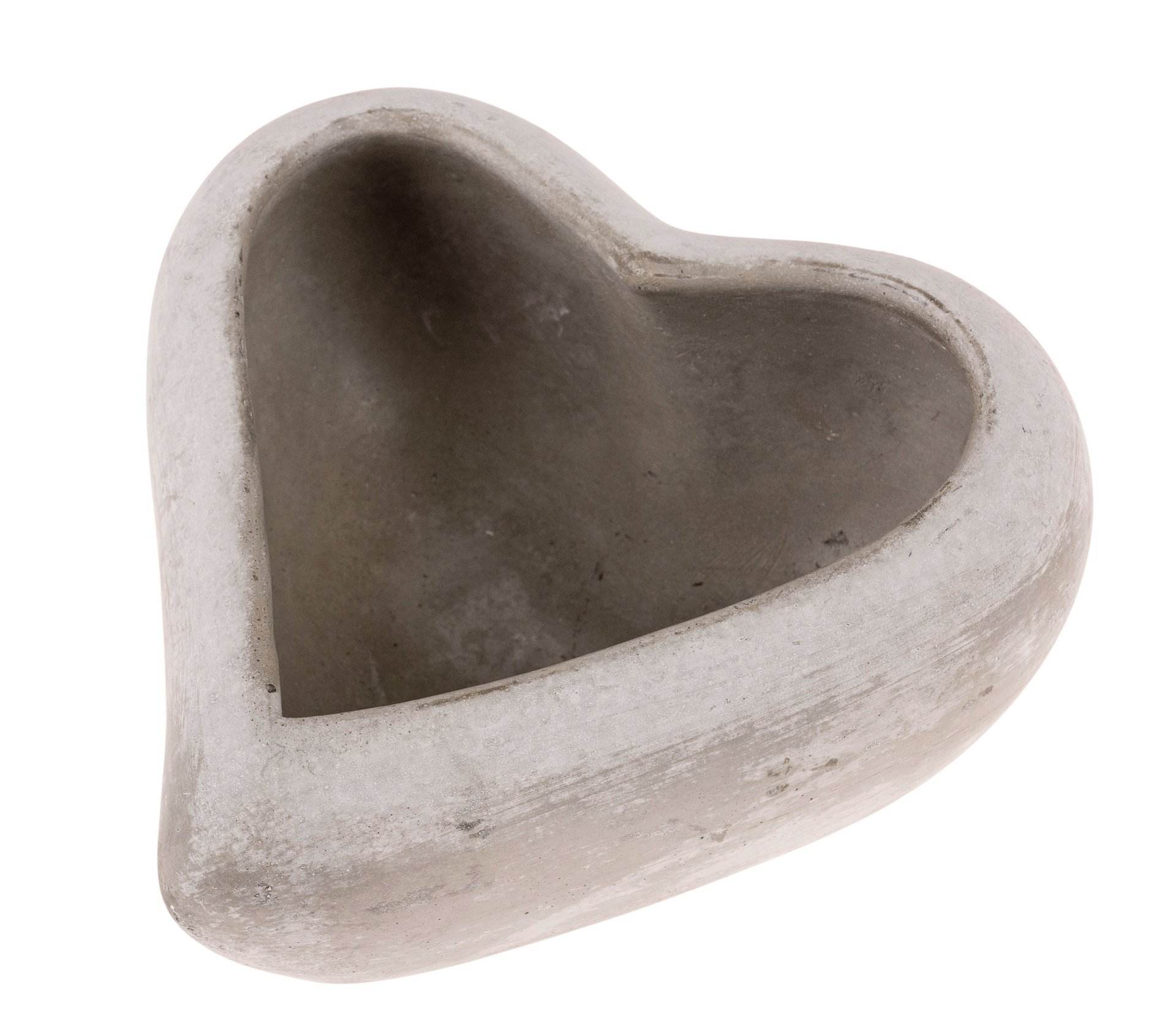 Cuore di pianta panciuto realizzato in cemento con superficie cancellata.
