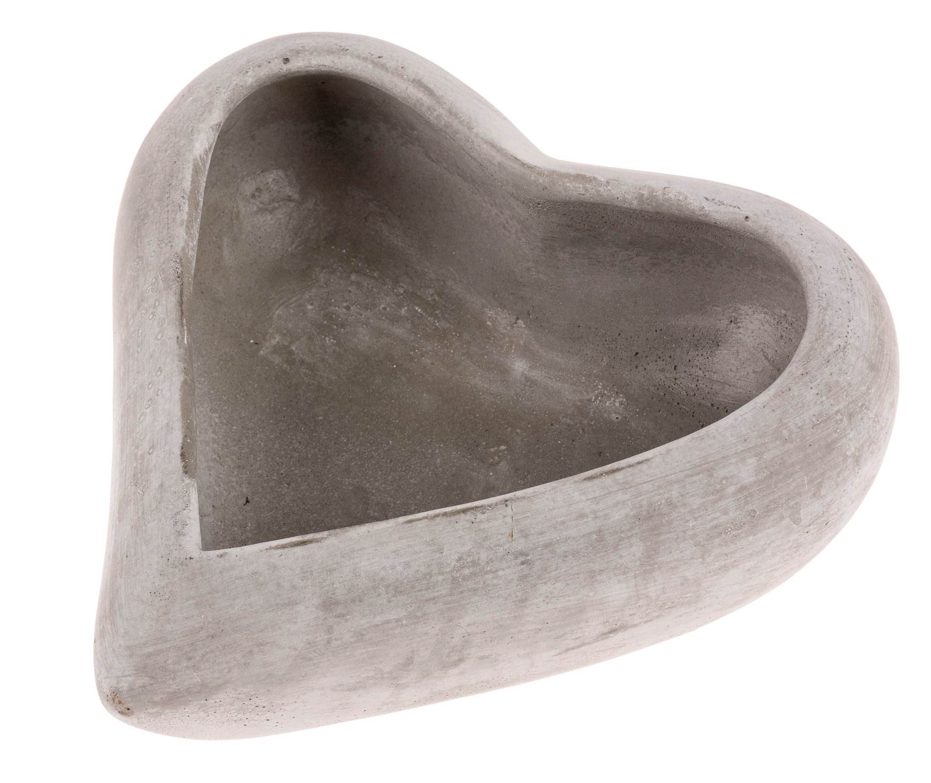 Cuore di pianta panciuto realizzato in cemento con superficie cancellata.