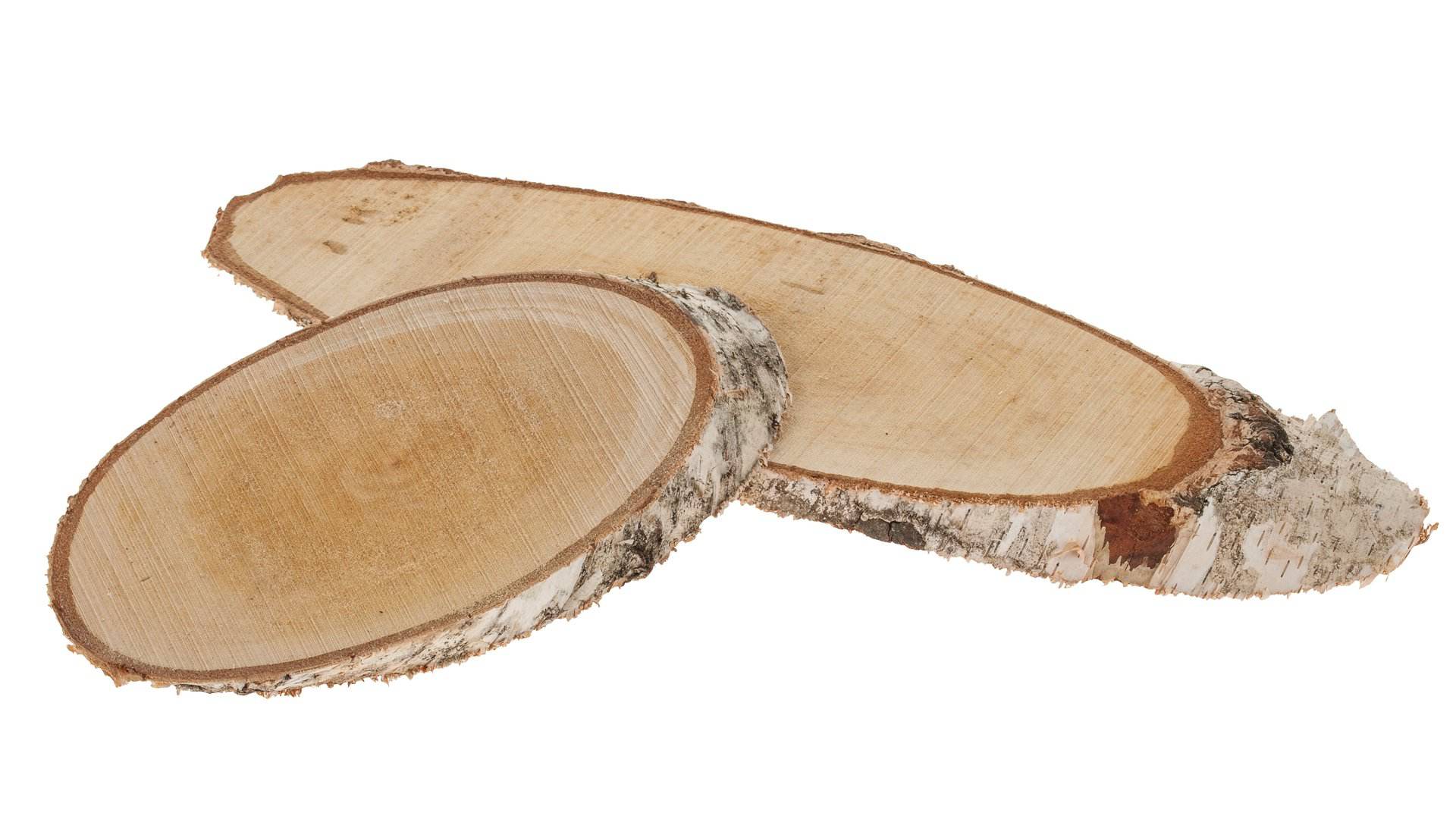 Disco ovale di betulla naturale con corteccia. Le misure e i colori possono variare essendo prodotti naturali.