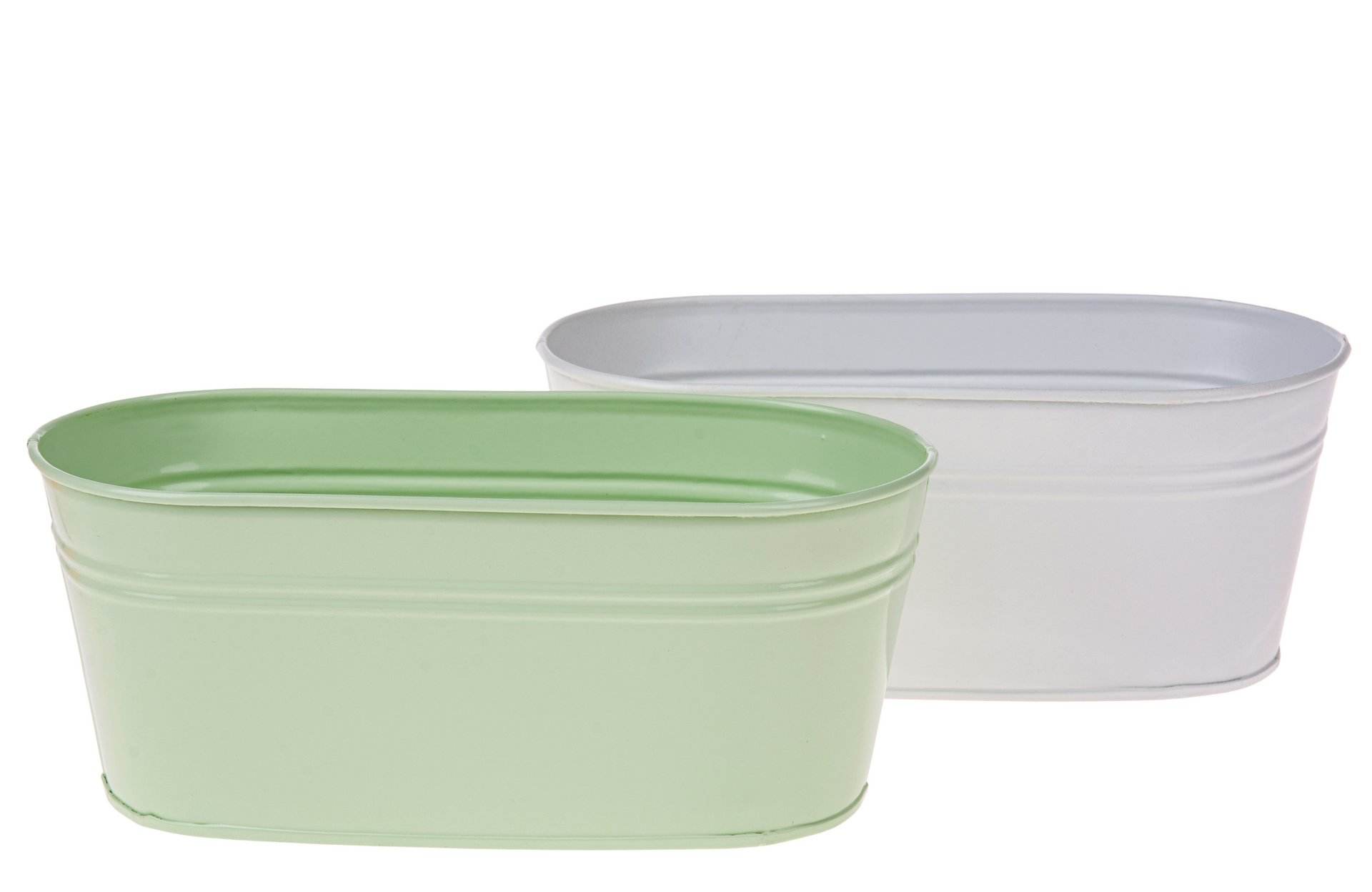 Jardiniere in zinco con superficie opaca.Assortimento in 2 colori = 3 pezzi per colore.