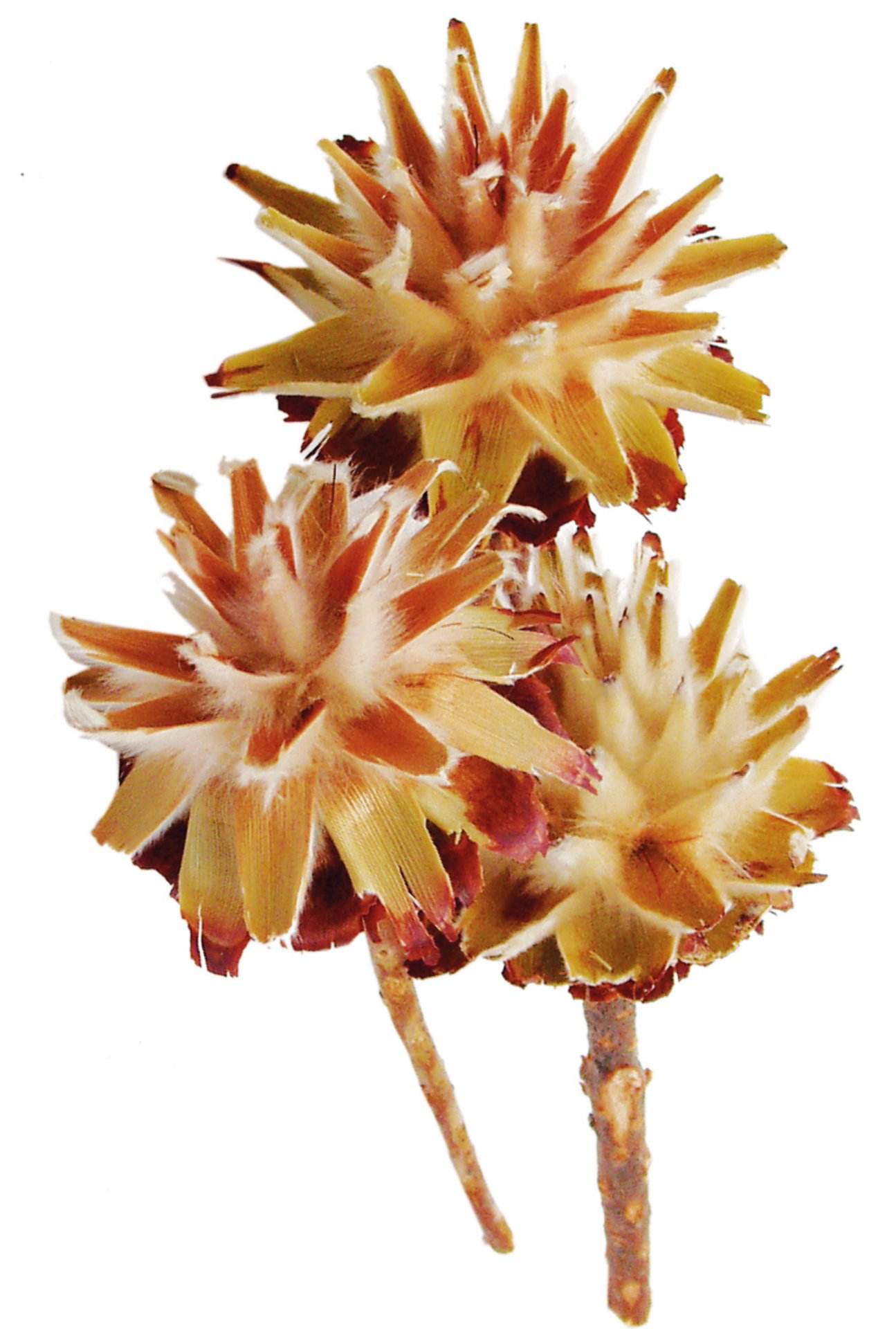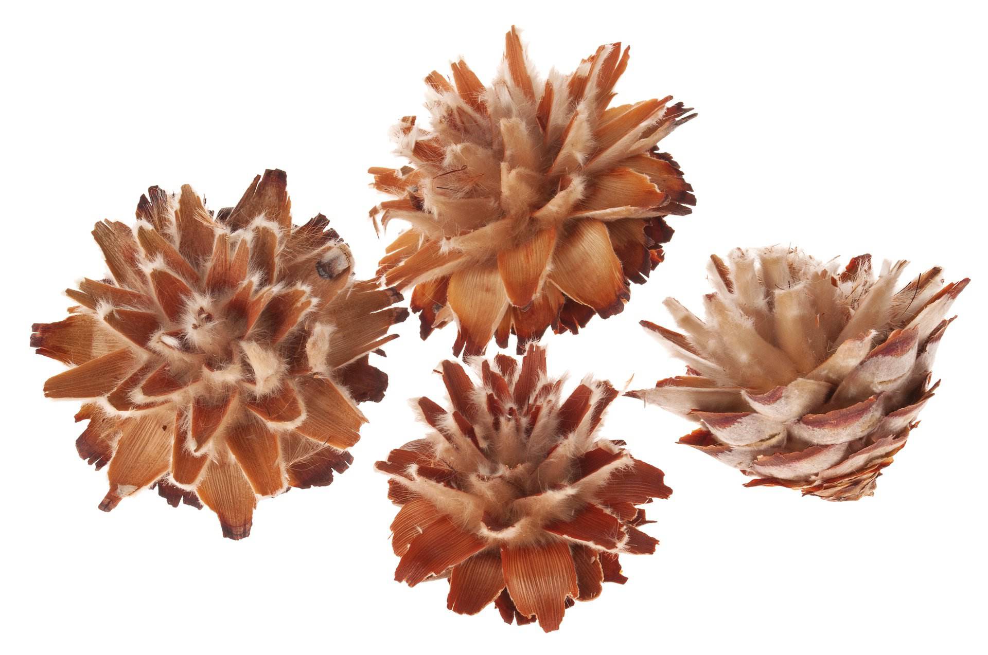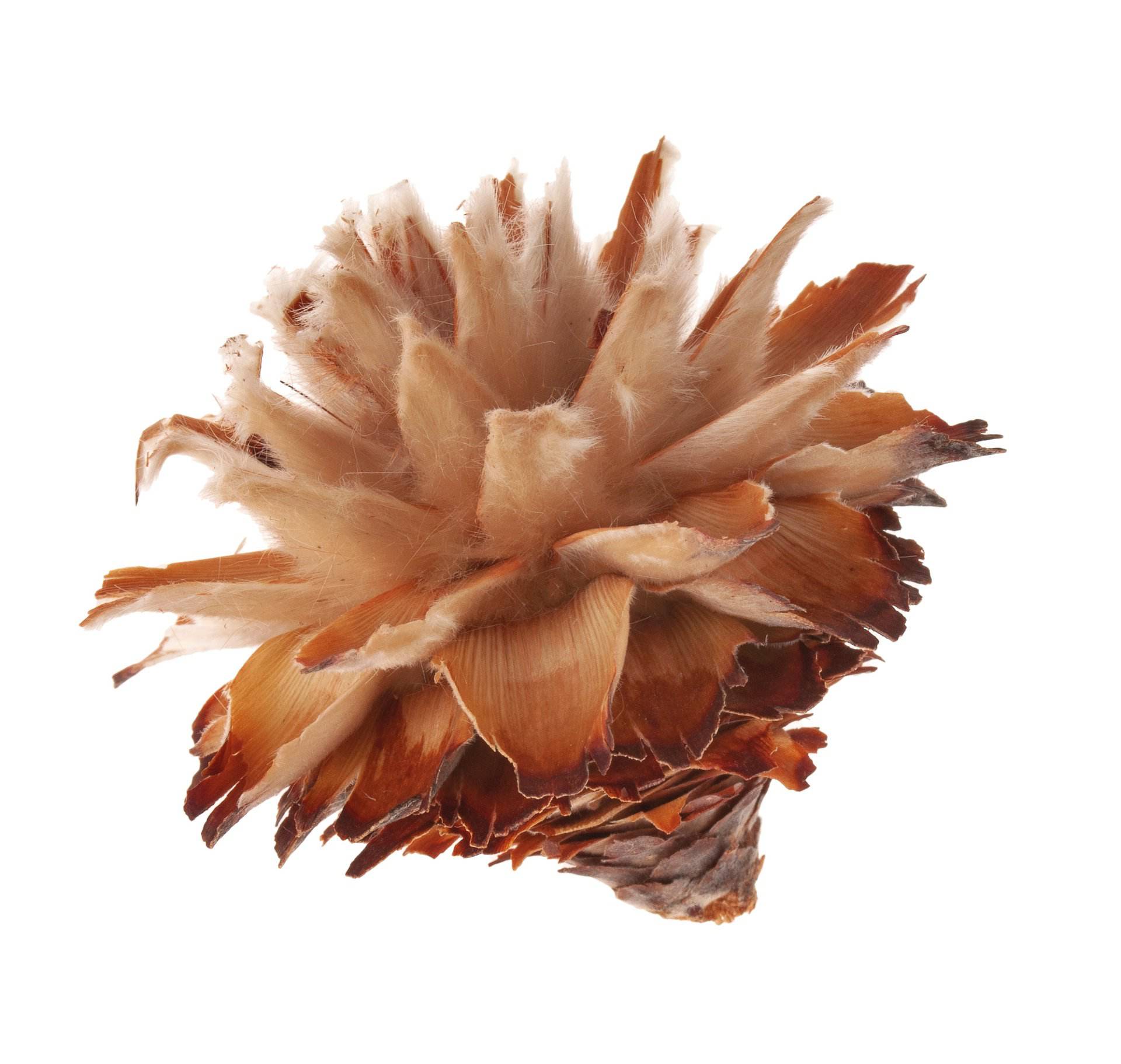 Fiori di Leucospernum ben aperti con stelo corto. Colore: naturale. Misure: Ø 4 x 12 cm.