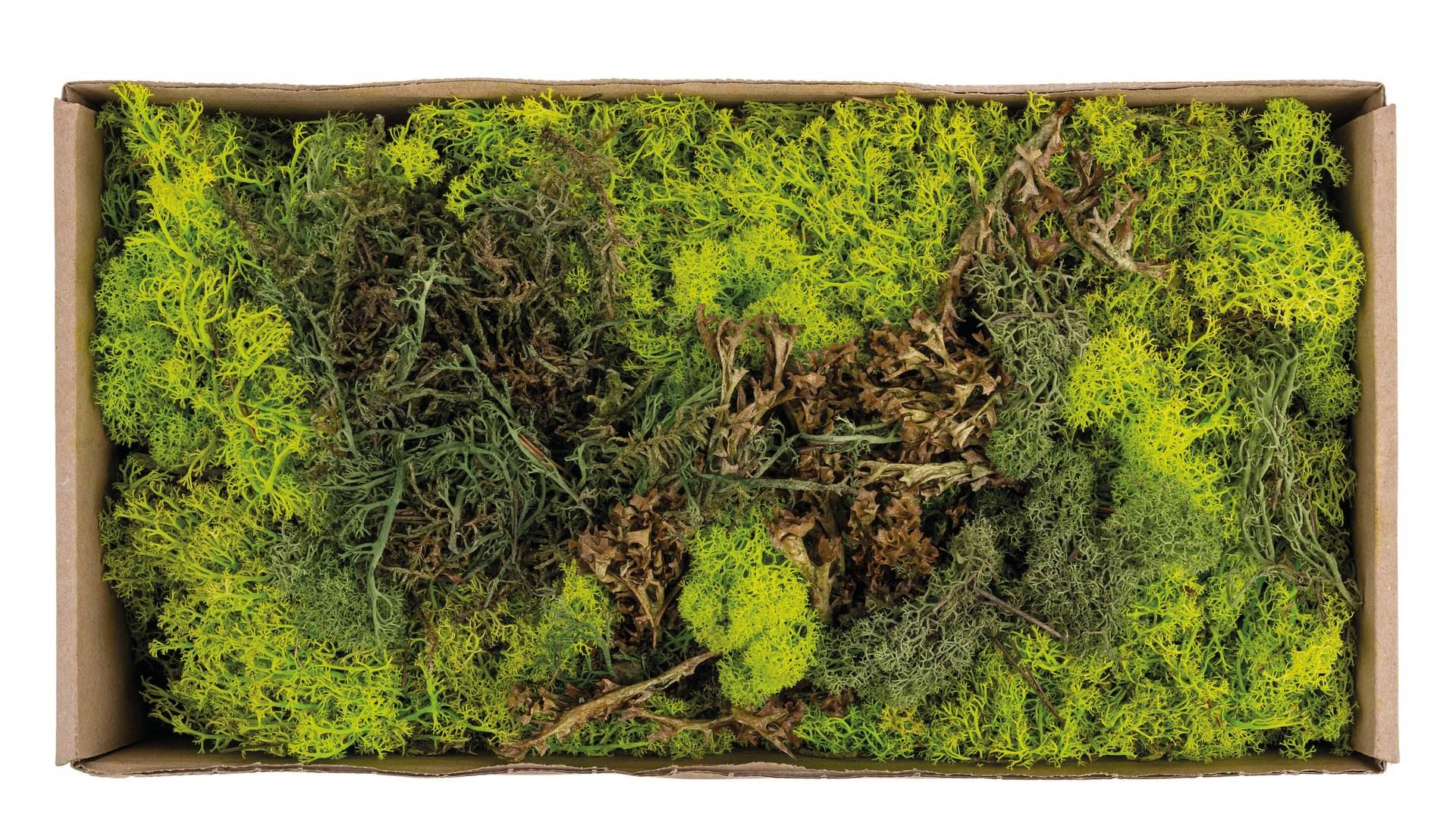 Miscela in vari colori naturali e verdi. Contiene vari tipi di muschio.