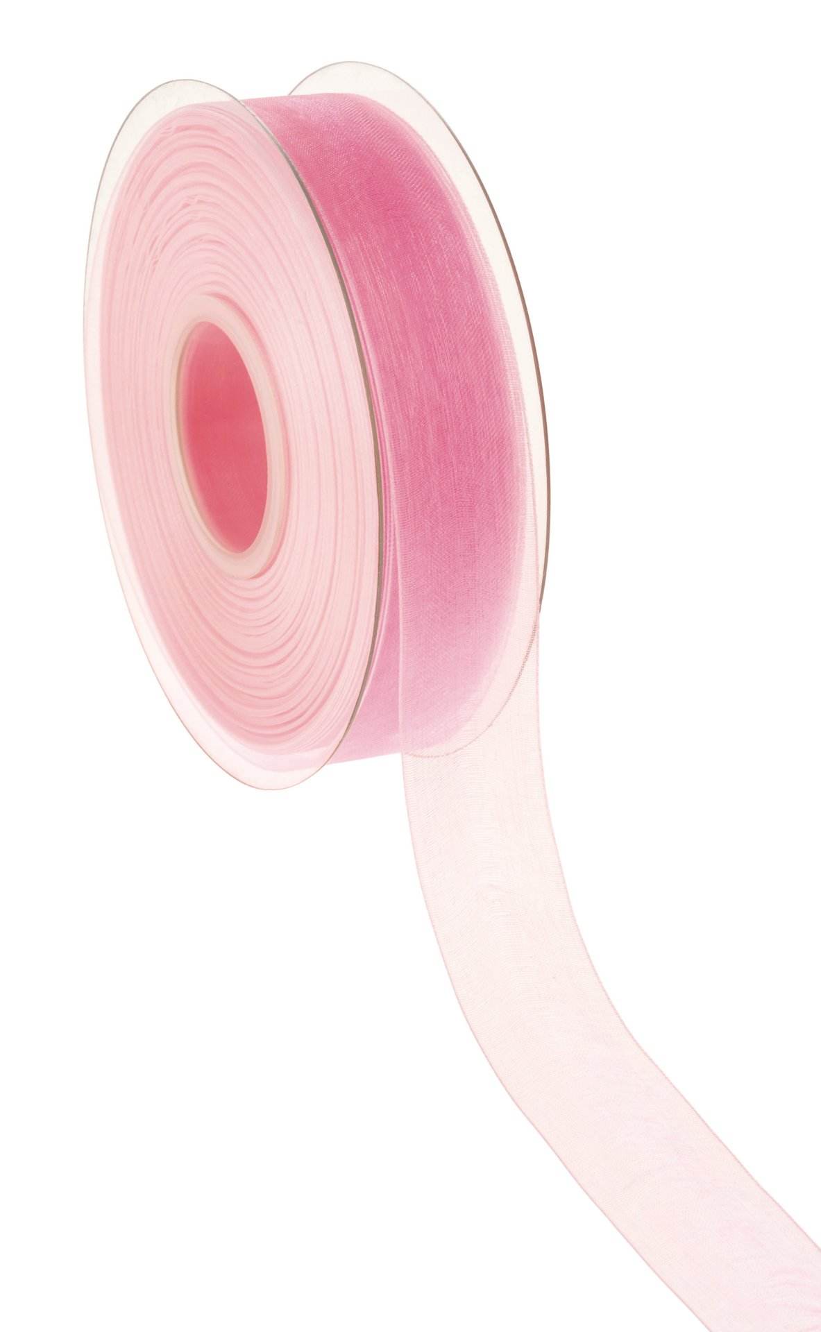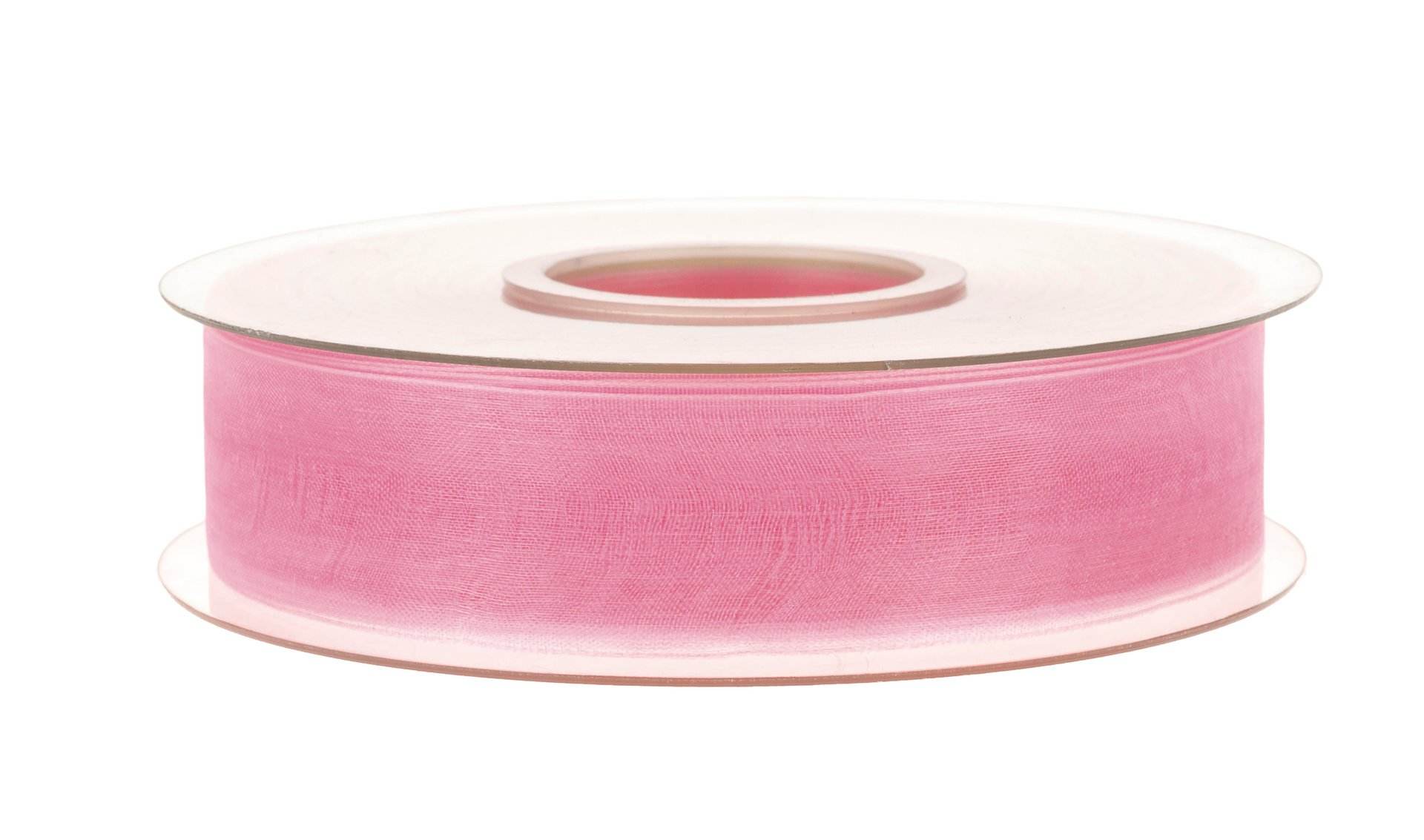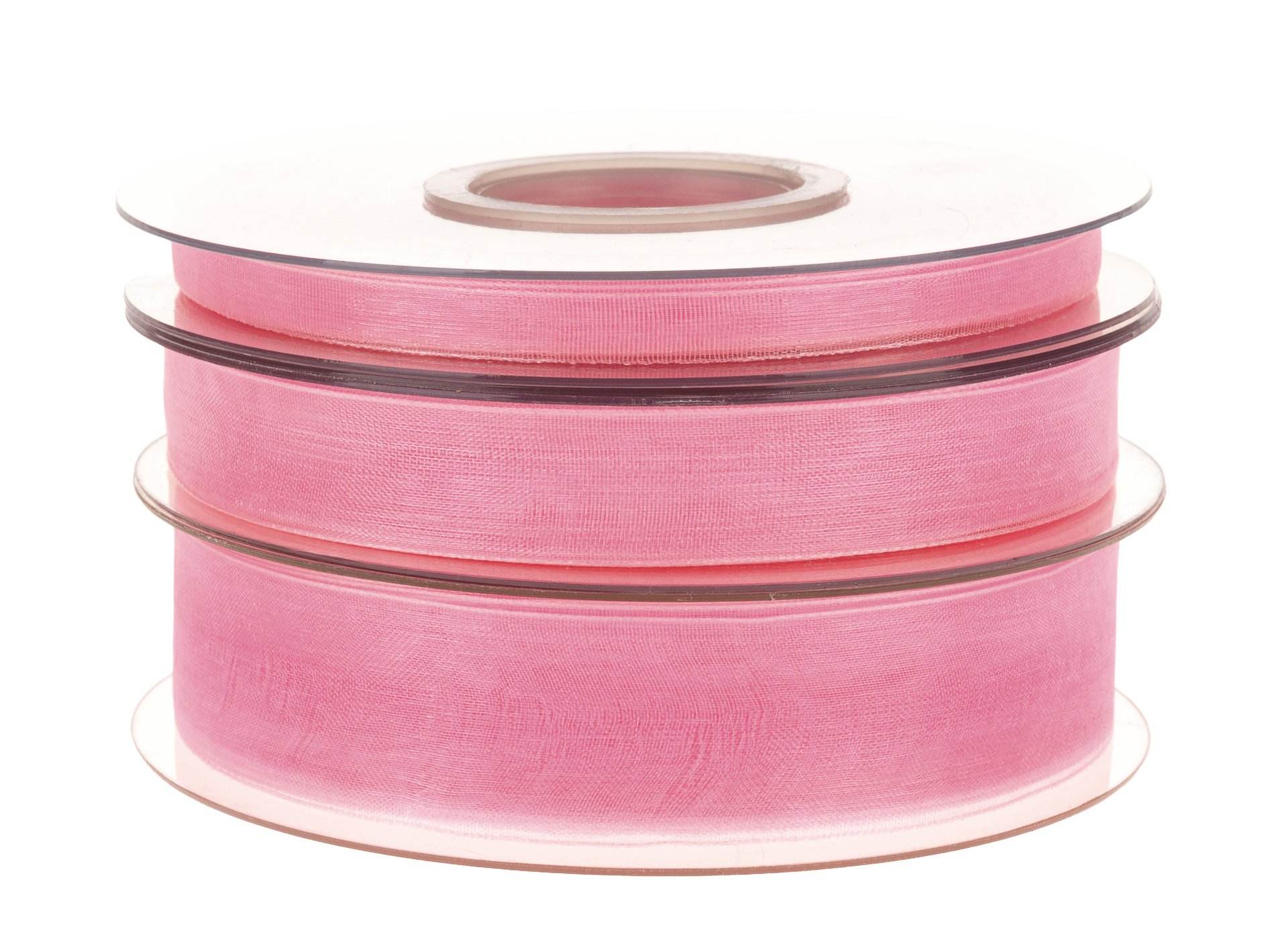 Delicato nastro di organza con bordo intrecciato. Misure: 6 mm x 50 m, 15 mm x 50 m e 25 mm x 50 m.