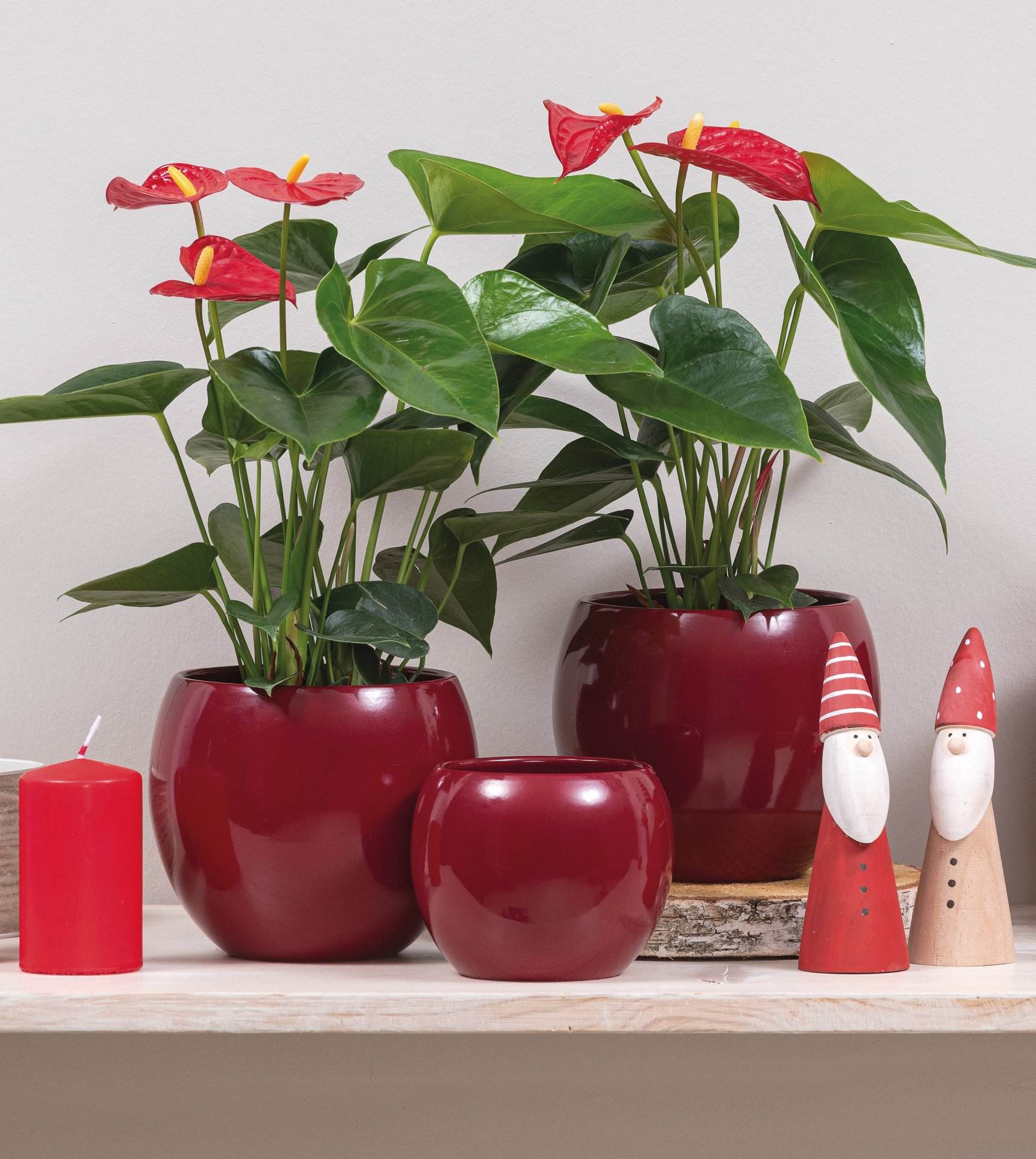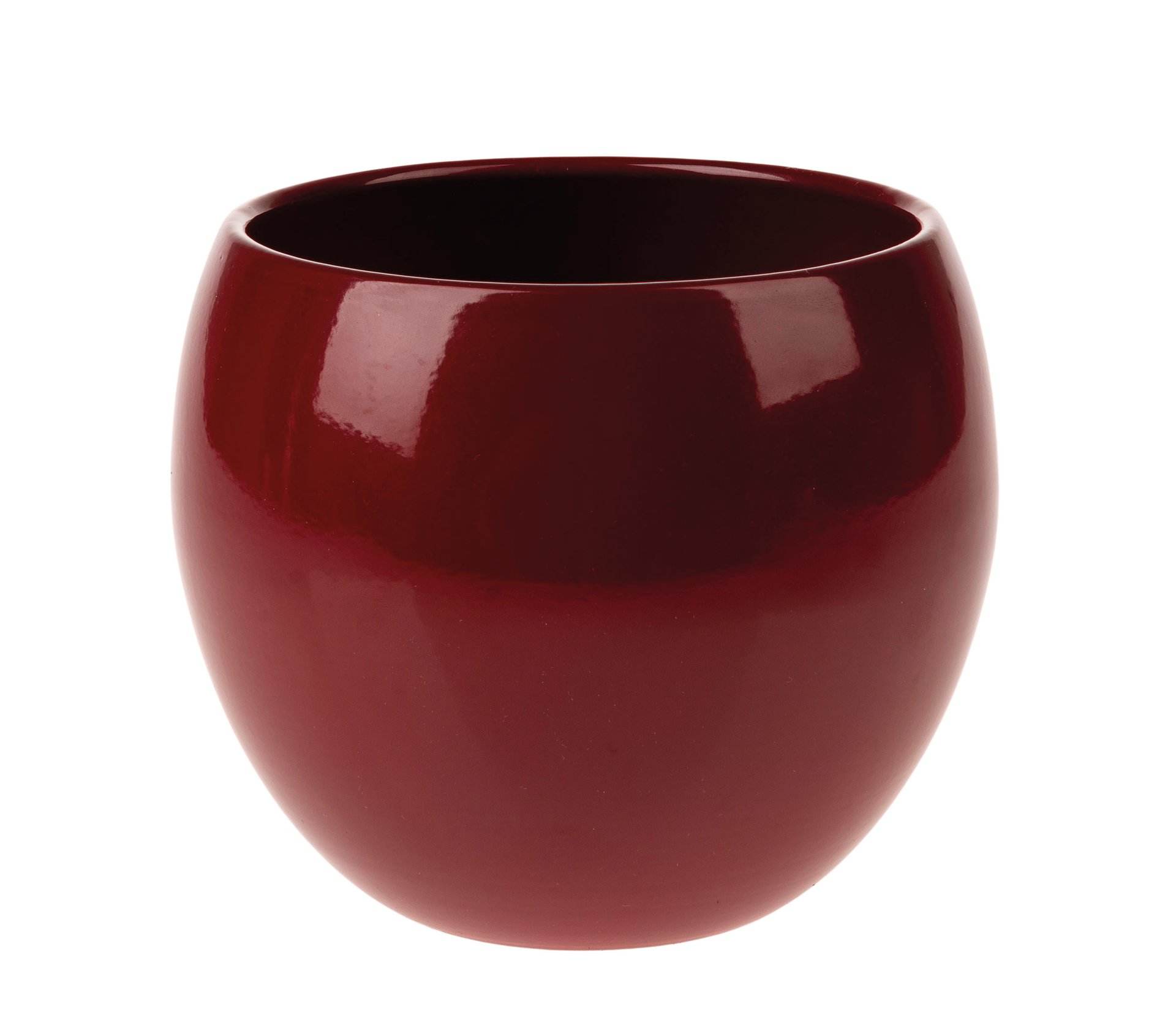 Vaso in ceramica lucida a forma di palla in diverse dimensioni e colori.