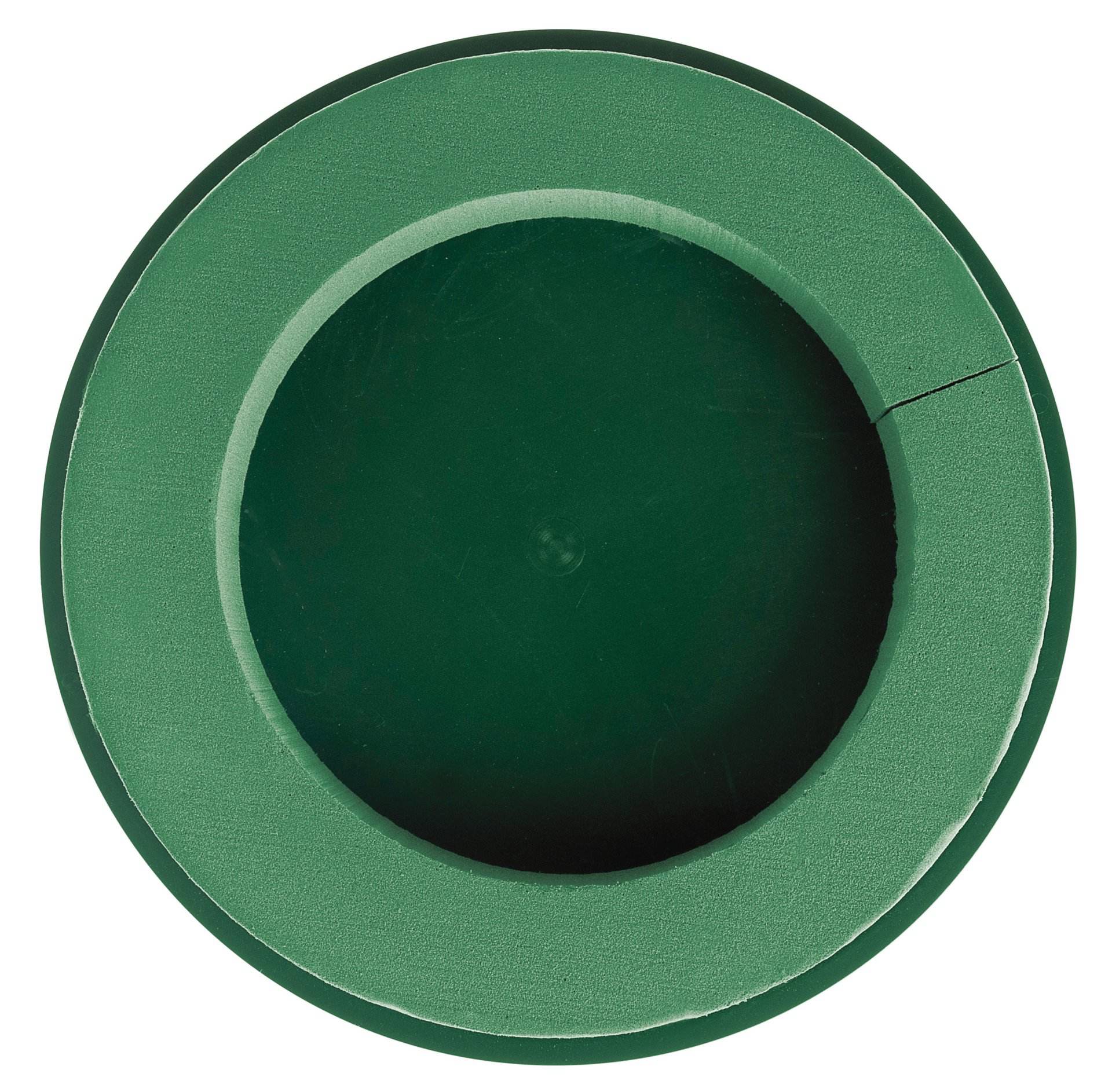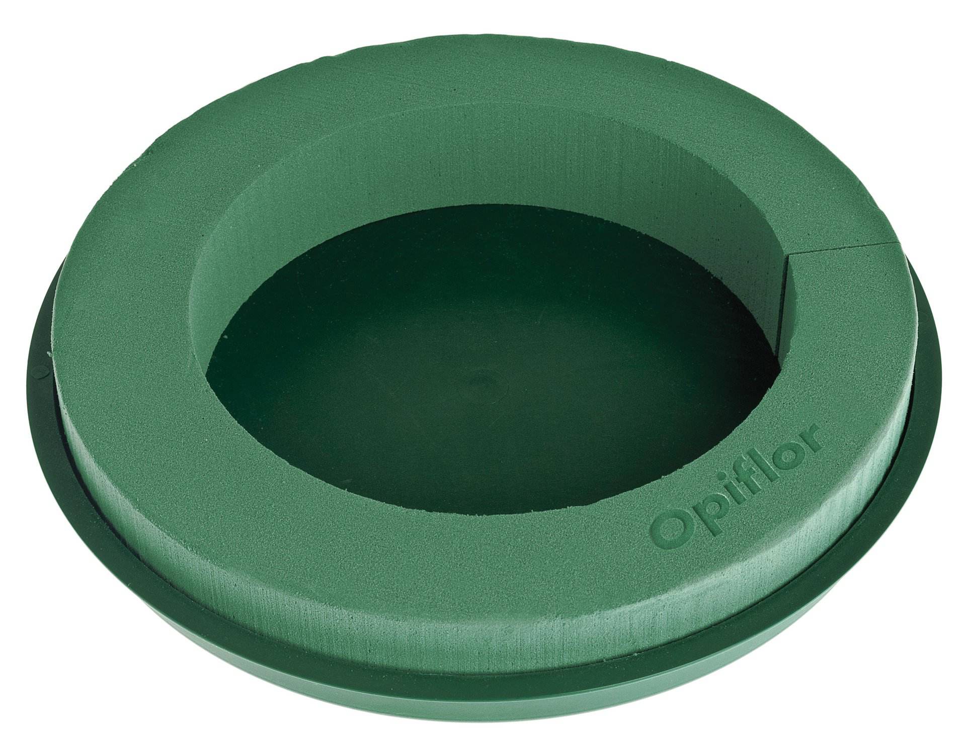 Piatto di spugna idrofila per fiori recisi su una base di plastica verde senza aperture. Ø interno: 20 cm.