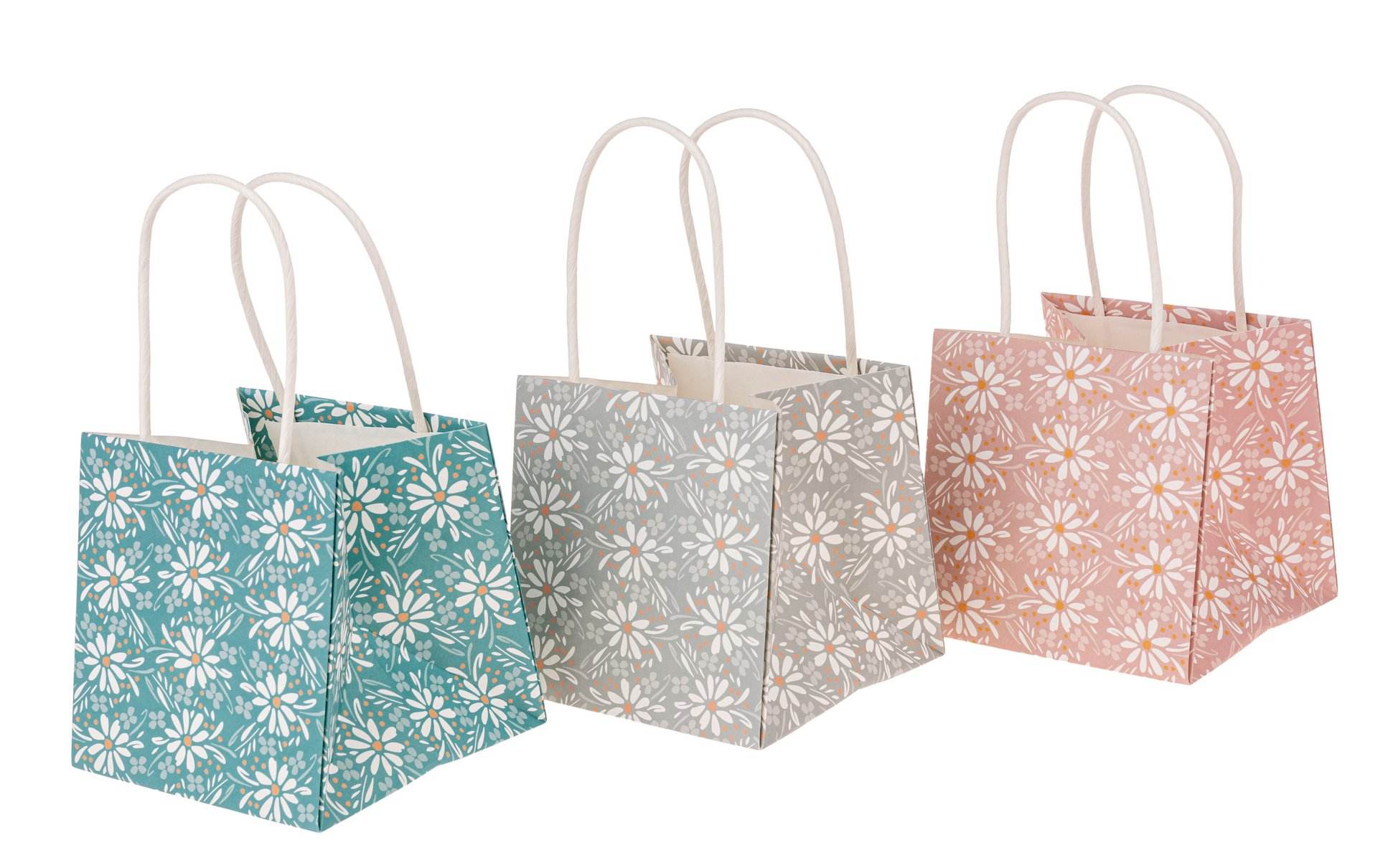 Sacchetto in carta kraft con manici e motivo floreale. Rivestito all´interno. Assortiti in 3 colori.