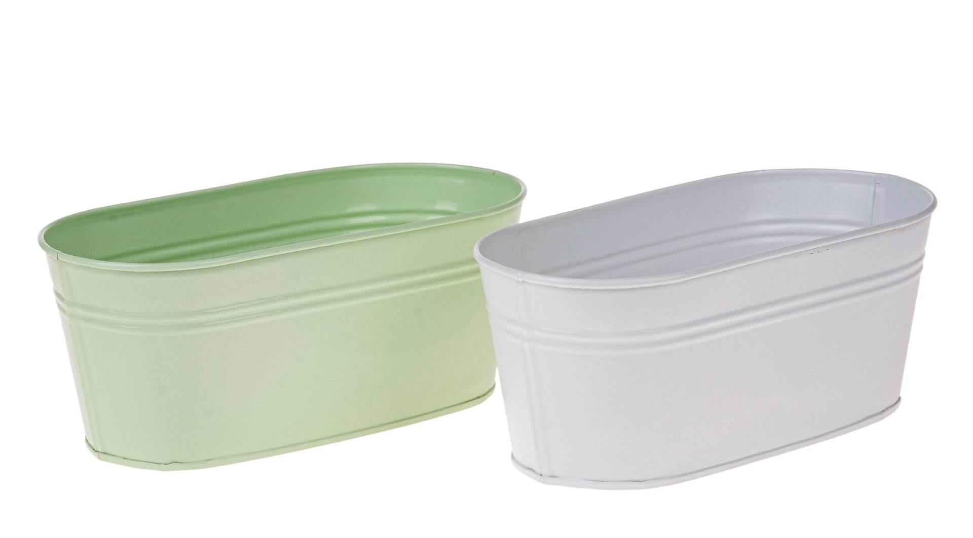Jardiniere in zinco con superficie opaca.Assortimento in 2 colori = 3 pezzi per colore.