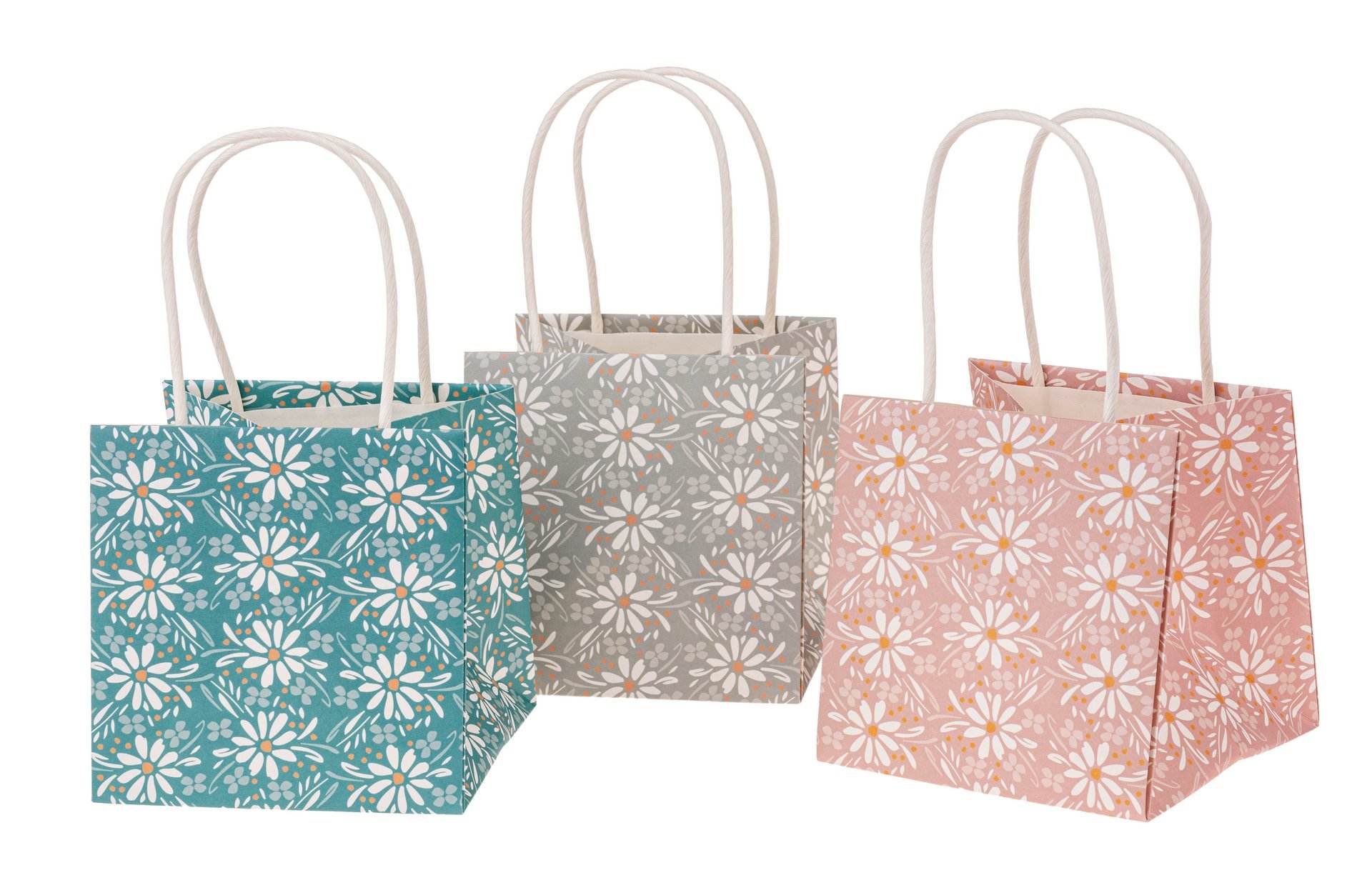 Sacchetto in carta kraft con manici e motivo floreale. Rivestito all´interno. Assortiti in 3 colori.