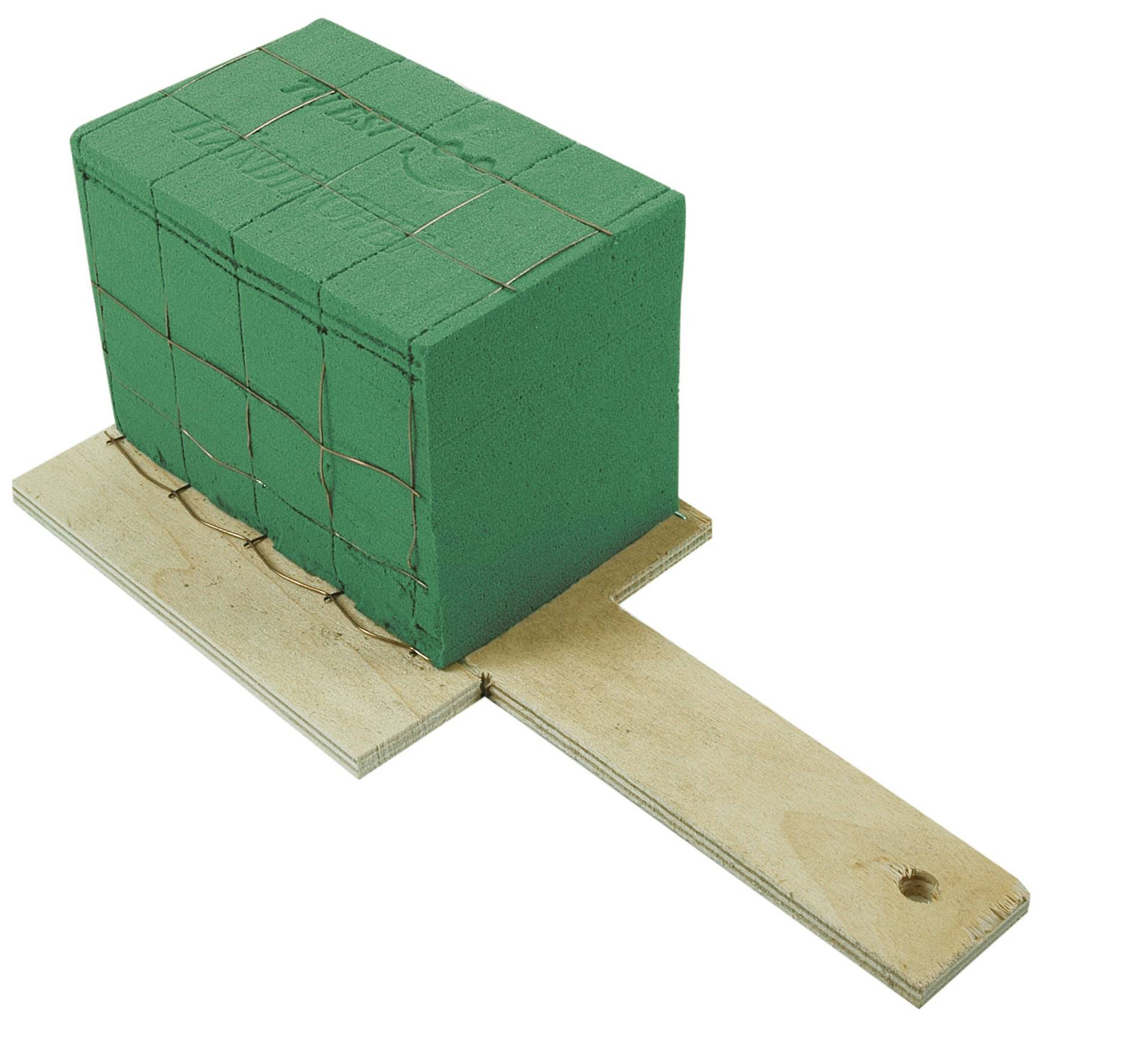Intera spugna idrofila Opiflor con rete metallica su base di legno. Con comoda impugnatura lunga 11 cm con un foro per un facile fissaggio.