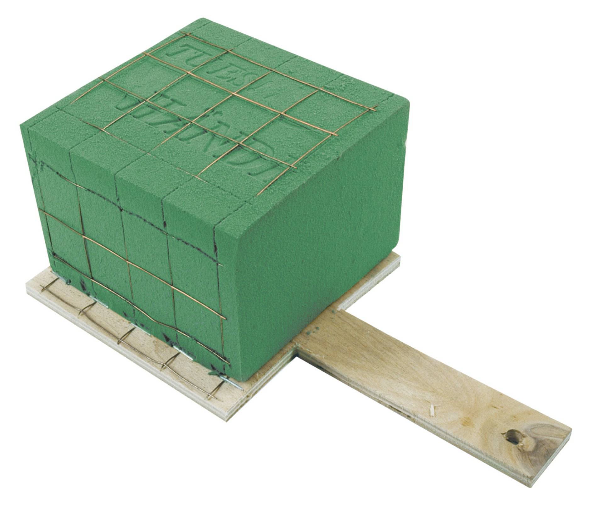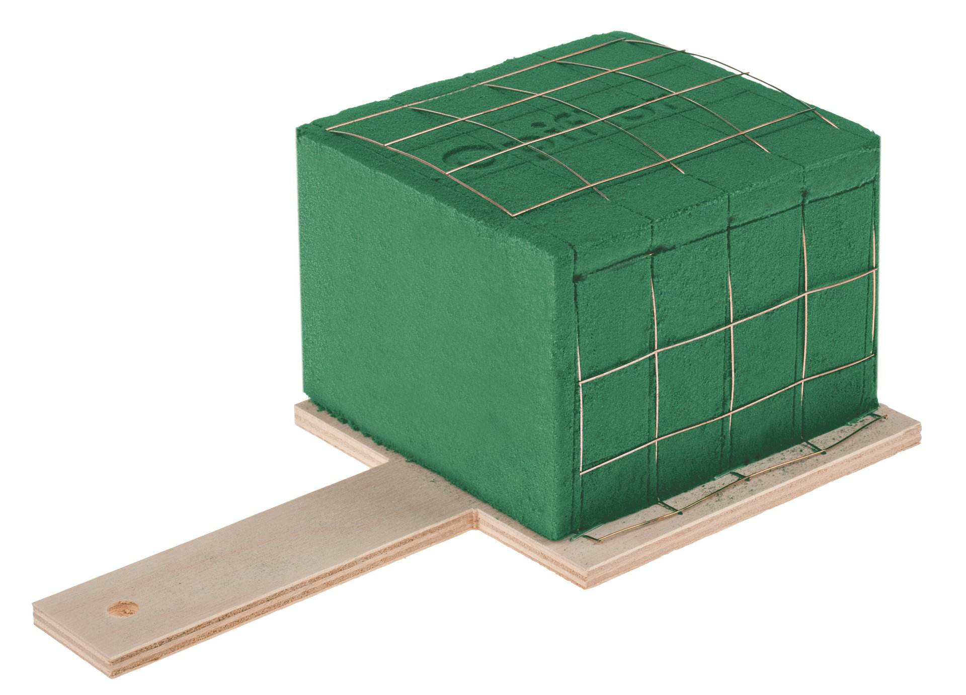 Intera spugna idrofila Opiflor con rete metallica su base di legno. Con comoda impugnatura lunga 11 cm con un foro per un facile fissaggio.