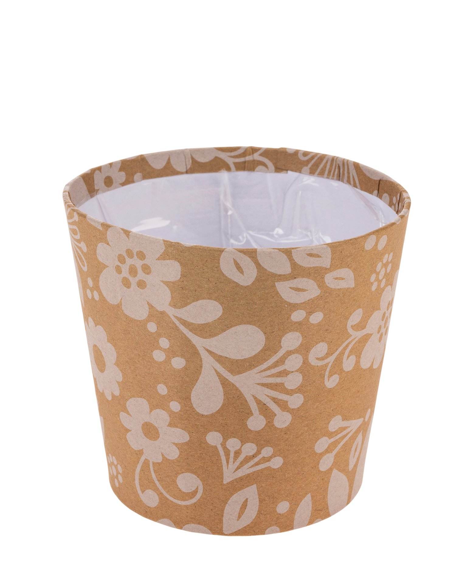 Vaso in carta kraft con disegno floreale. Rivestito all'interno.