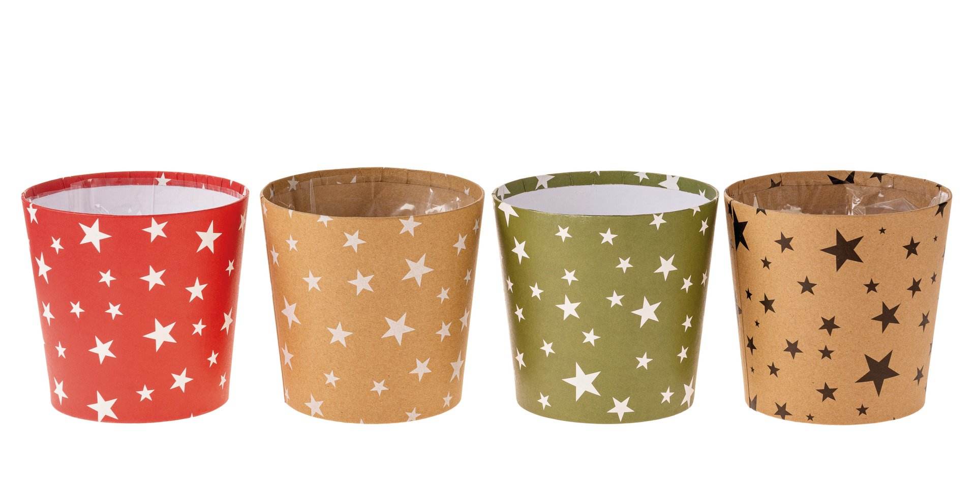 Coprivaso conico in carta con motivo a stelle. Rivestito all´interno.